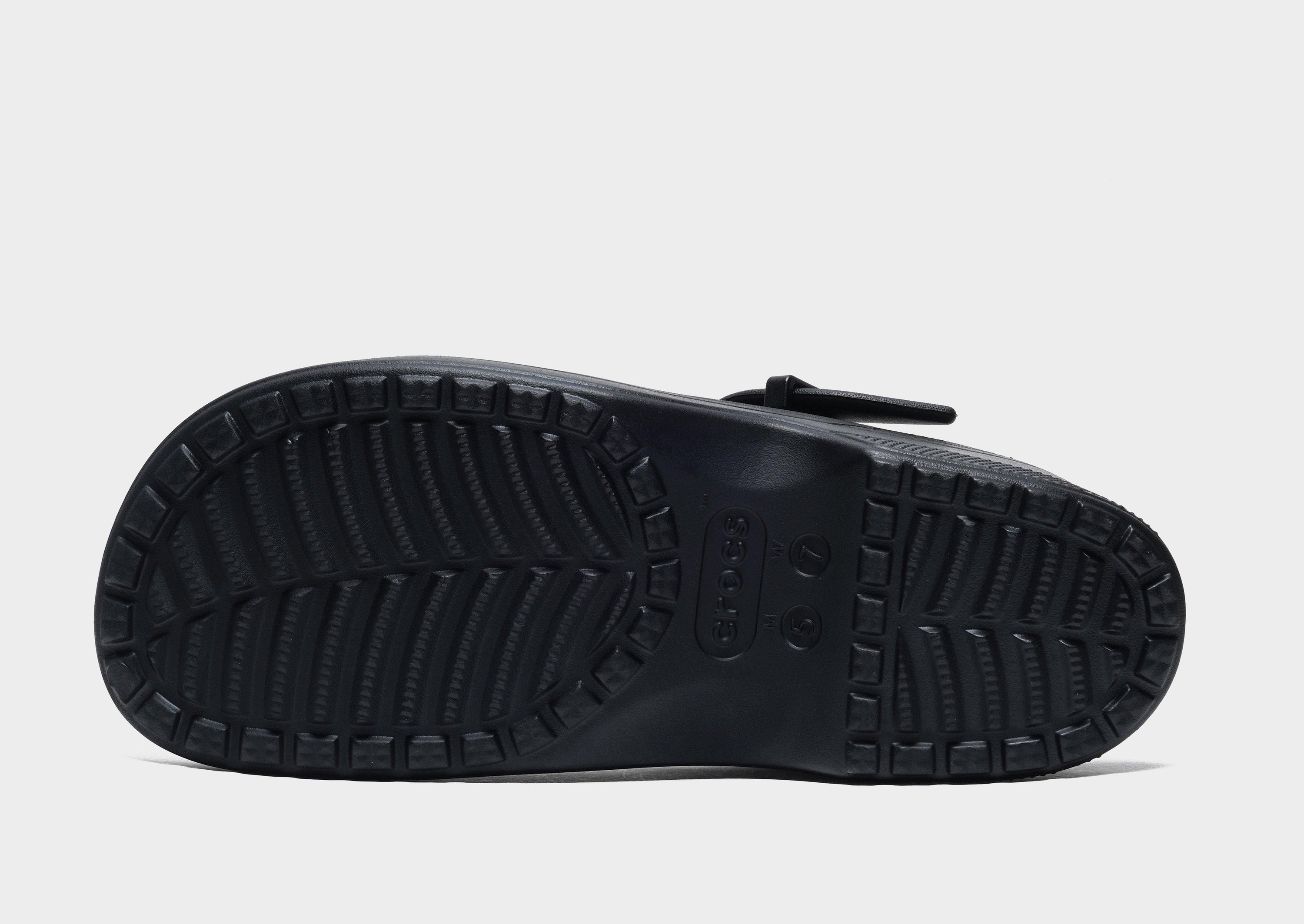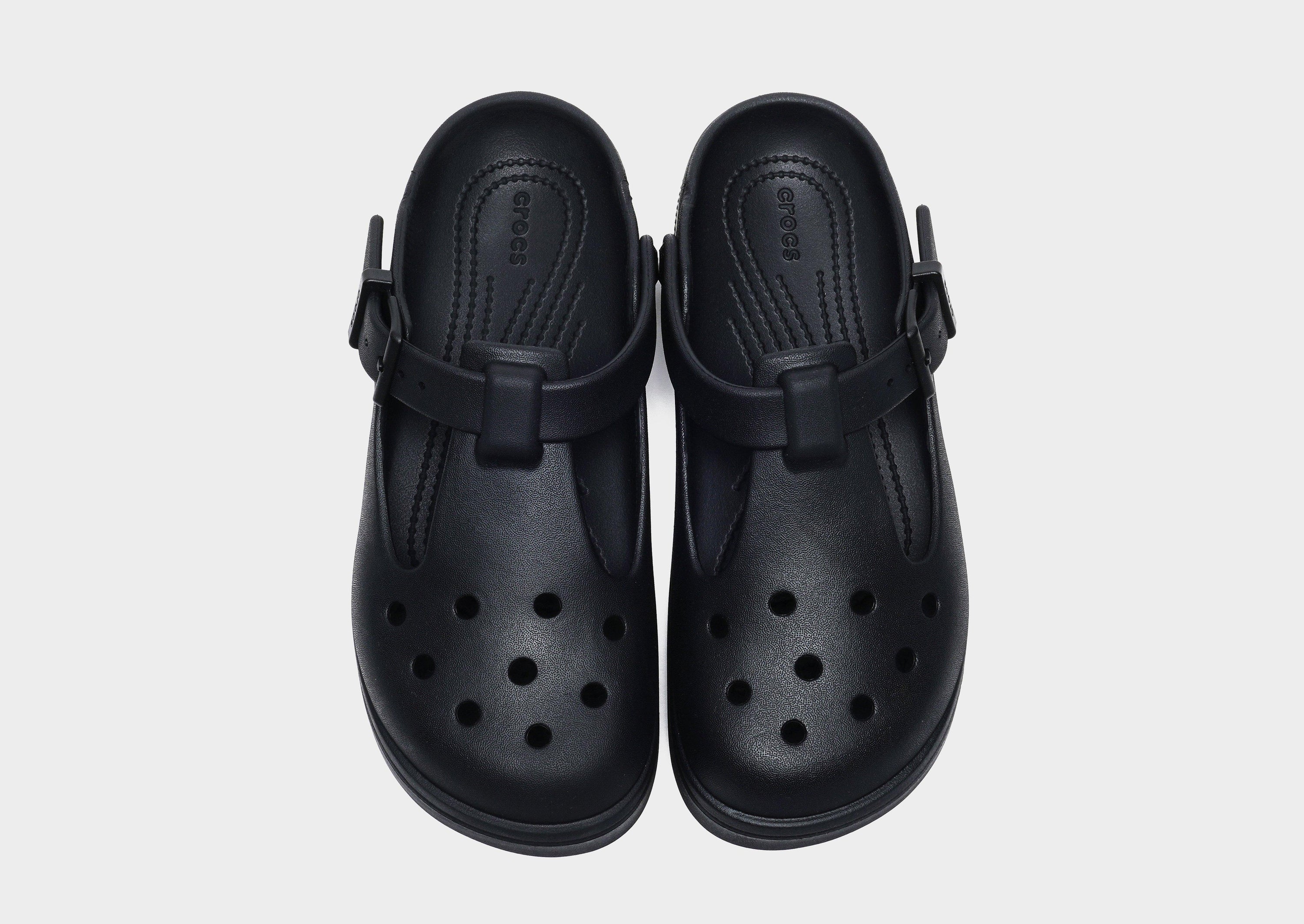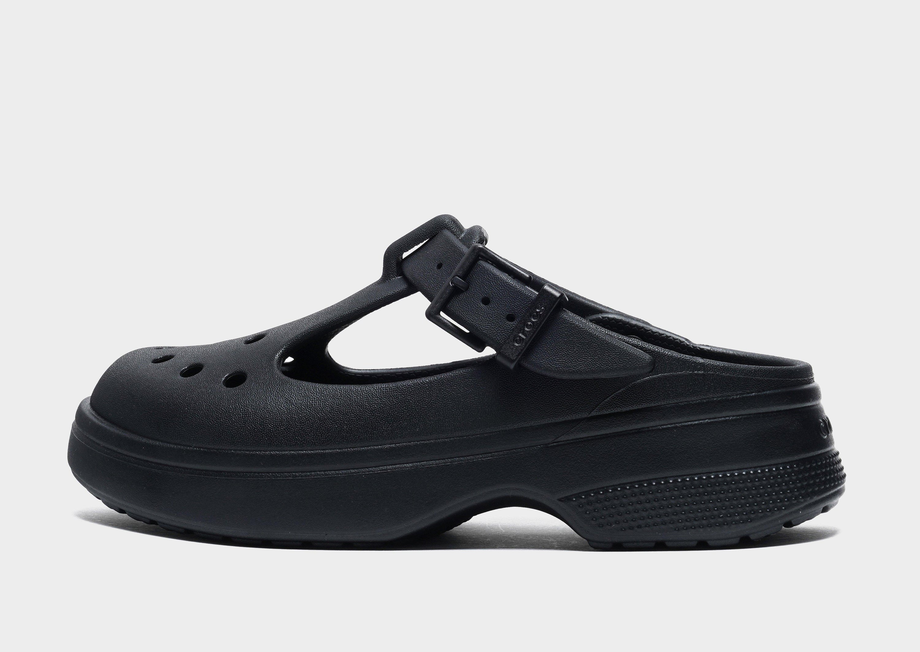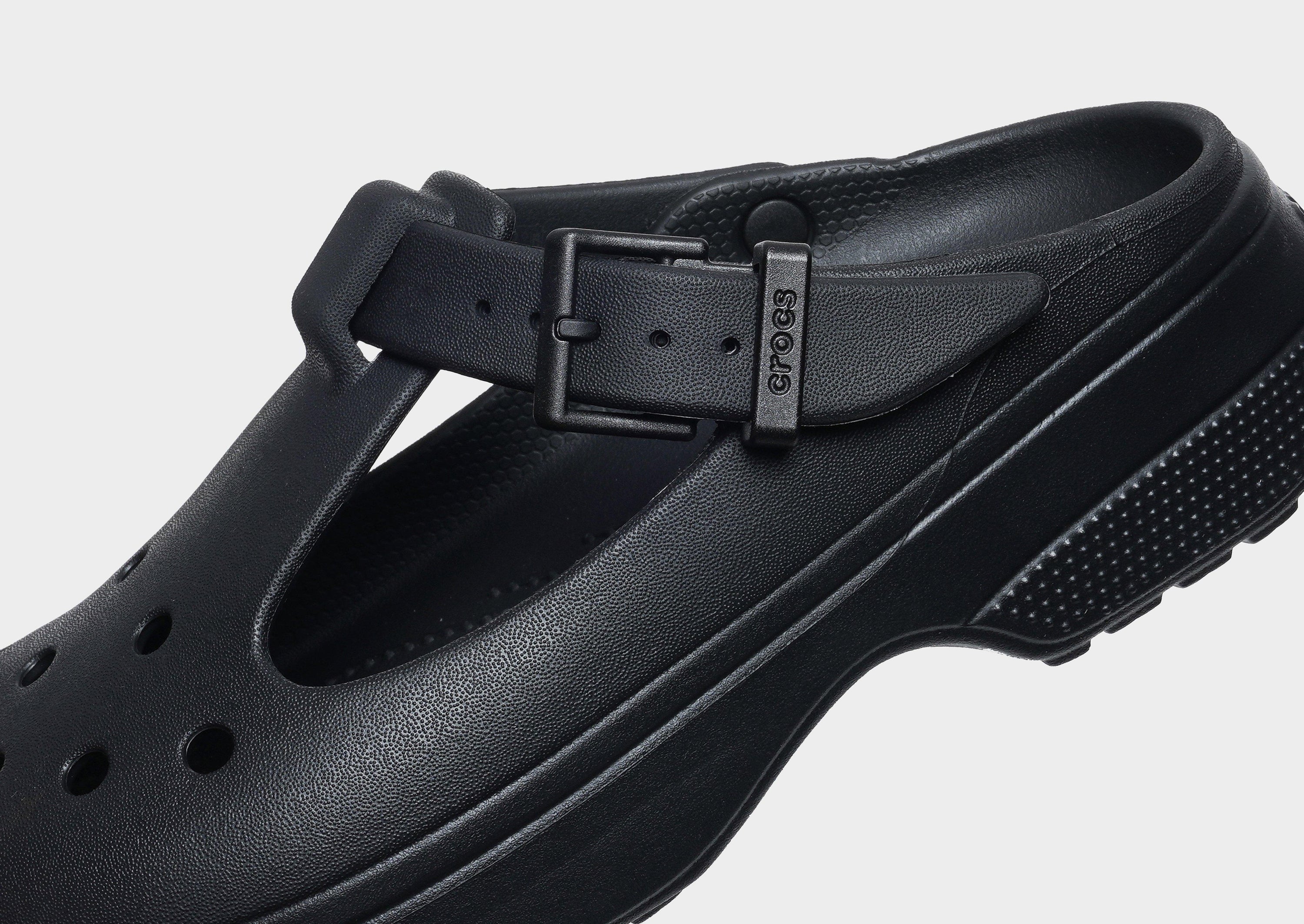 The Crocs Classic Mary Jane Clog in Black offers a stylish twist on the iconic Classic Clog, combining feminine design with Crocs' renowned comfort.This Mary Jane-style clog features an adjustable front strap with a buckle and an elevated 59 mm heel, providing both style and support.The upper is designed to hold Jibbitz™ charms, allowing for personalized customization.Built on the shape and fit of the Classic Platform, it delivers lightweight, flexible, and 360-degree comfort, making it versatile and easy to wear .