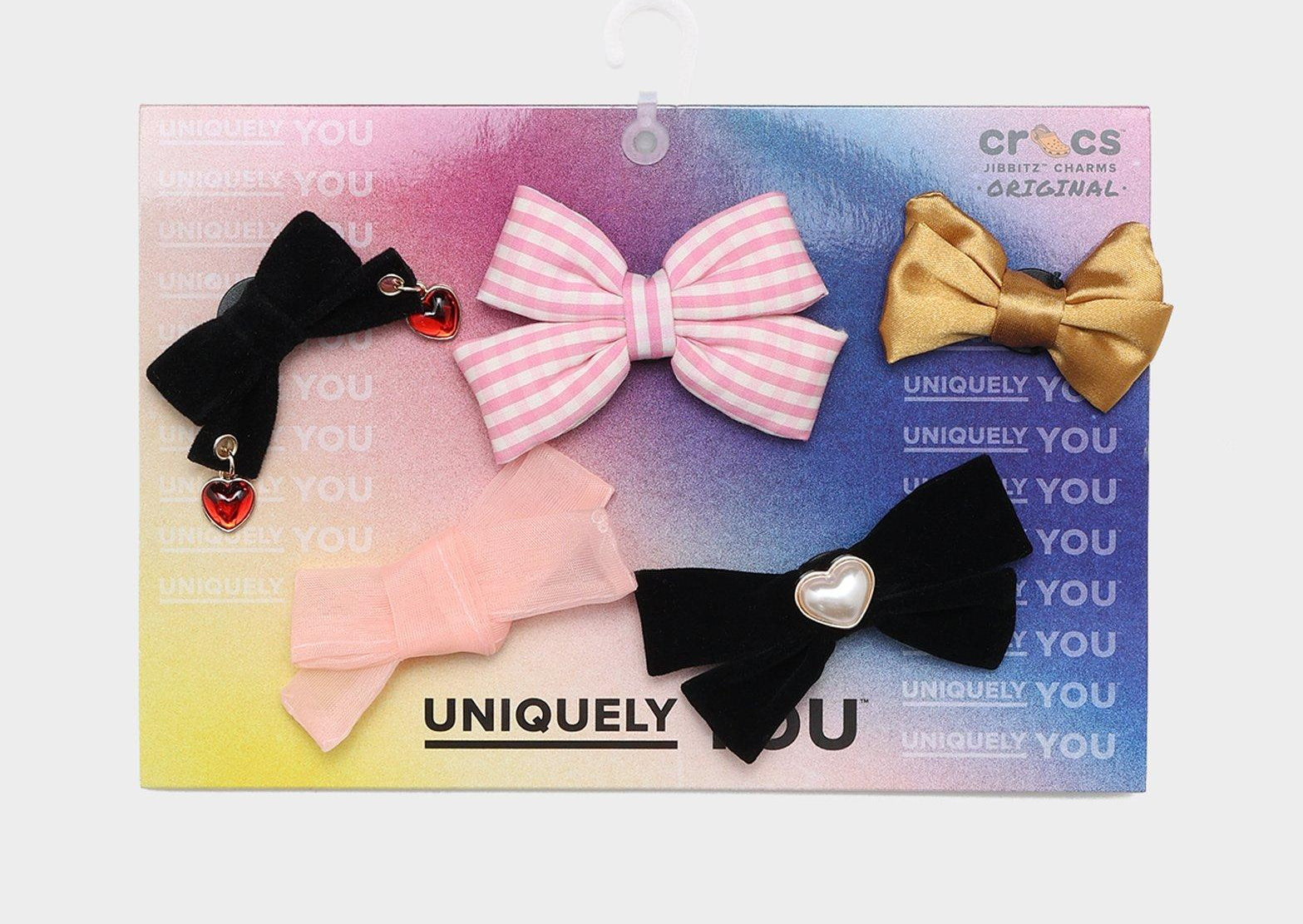 Pop some personality into your shoes with this Charming Bow 5 Pack Jibbitz™ charm. It's the perfect addition to your favorite pairs of clogs, slides, and more. Not a toy. Not intended for children under 3 years of age.