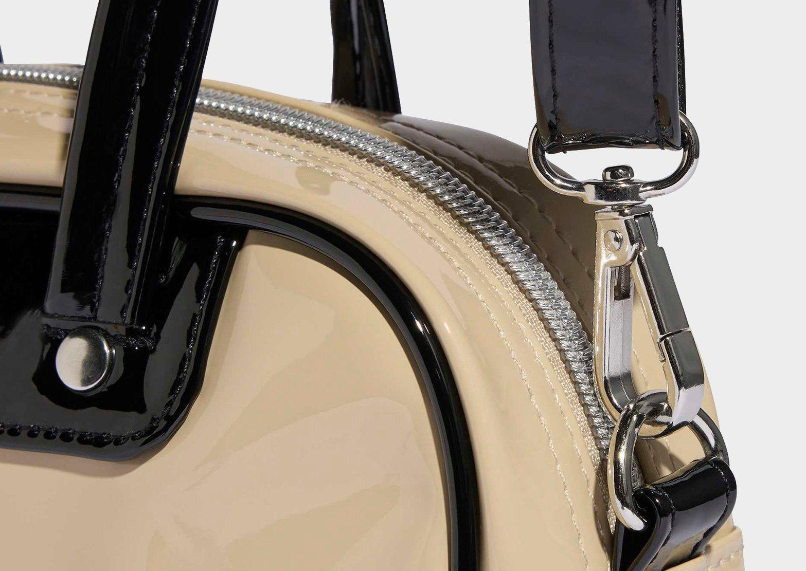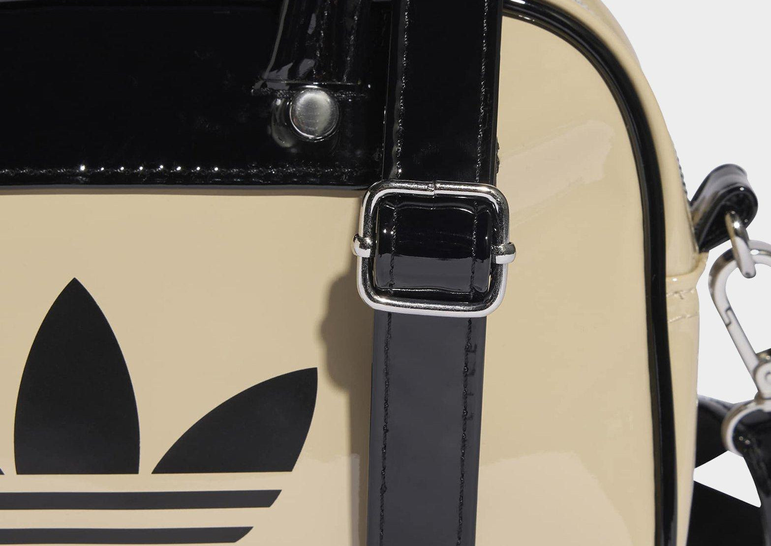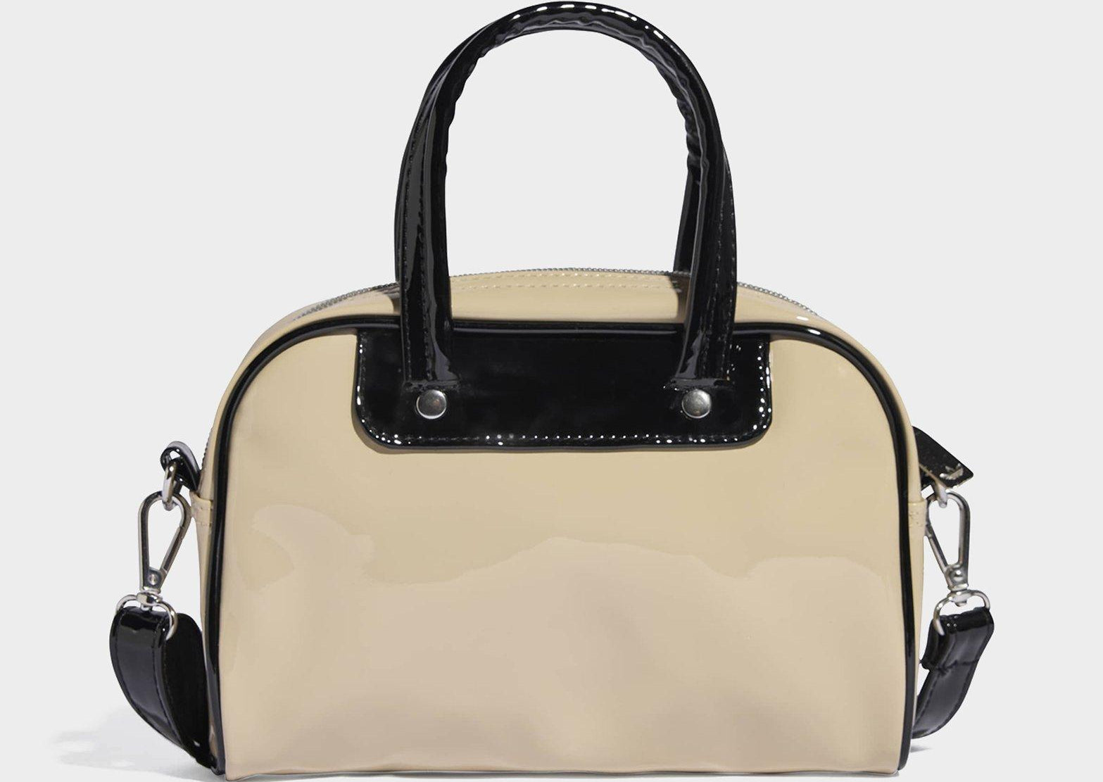 Based on an archival style, this Adicolor Mini Bowling Bag from adidas lets you tote your essentials in retro-inspired flair. Whether you sling it over your shoulder or grab it by the handles, this bag's shiny patent finish and contrast details make a stylish statement. An adjustable, detachable strap offers carrying options and metal rivets add a premium touch. The shiny Trefoil signs off the look.