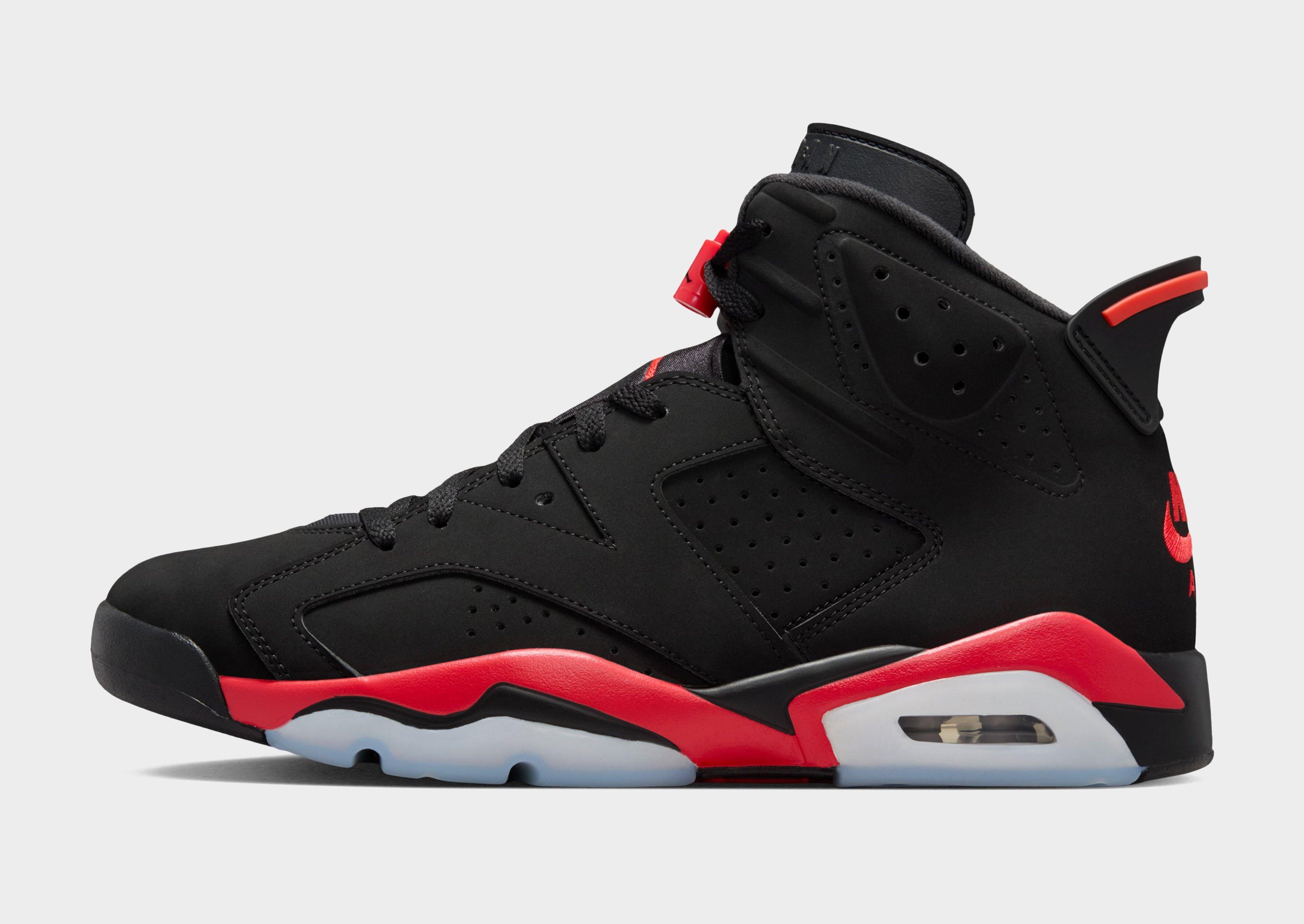 The elusive “Reverse Infrared” steps out of the archives to celebrate the AJ6’s 35th anniversary, bringing a legendary ‘99 “Infrared Salesman Sample” concept to life. This distinctive colorway flips a Jordan classic with reversed accents on the midsole, while bright Light Crimson branding on the heel delivers a bold finish. A sample tag and “Not For Resale” stamp on the inner collar complete the story. Built for comfort and performance, Nike Air technology absorbs impact for cushioning with every step, while a durable rubber outsole provides reliable grip and long-lasting wear.