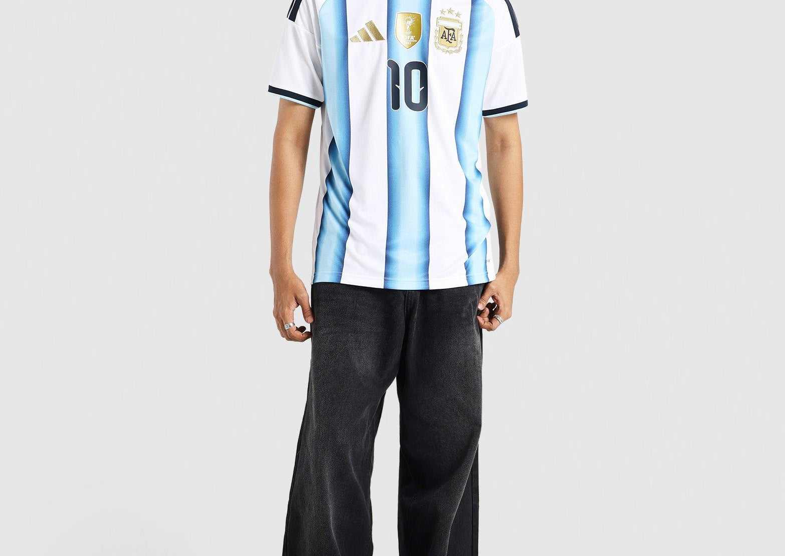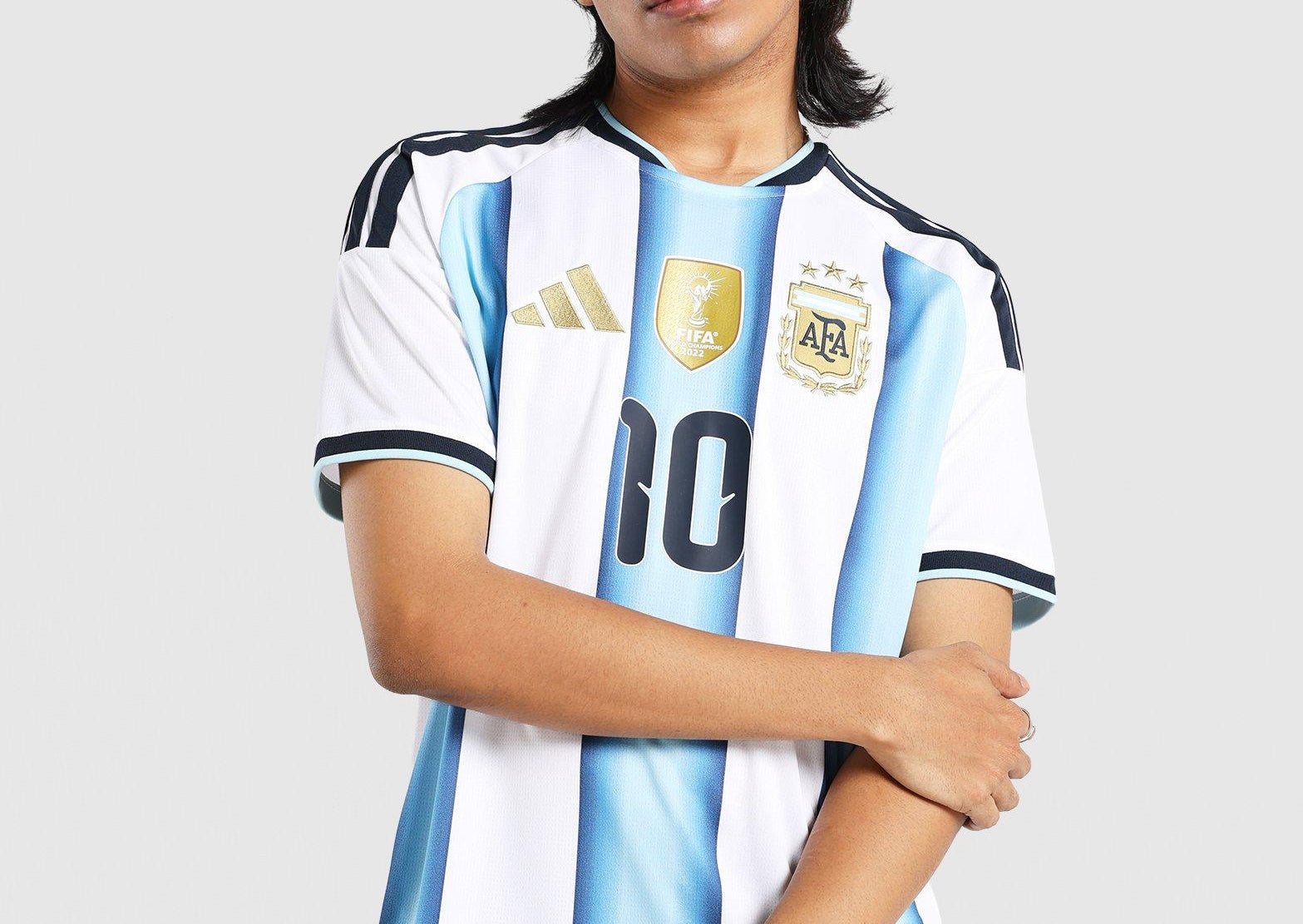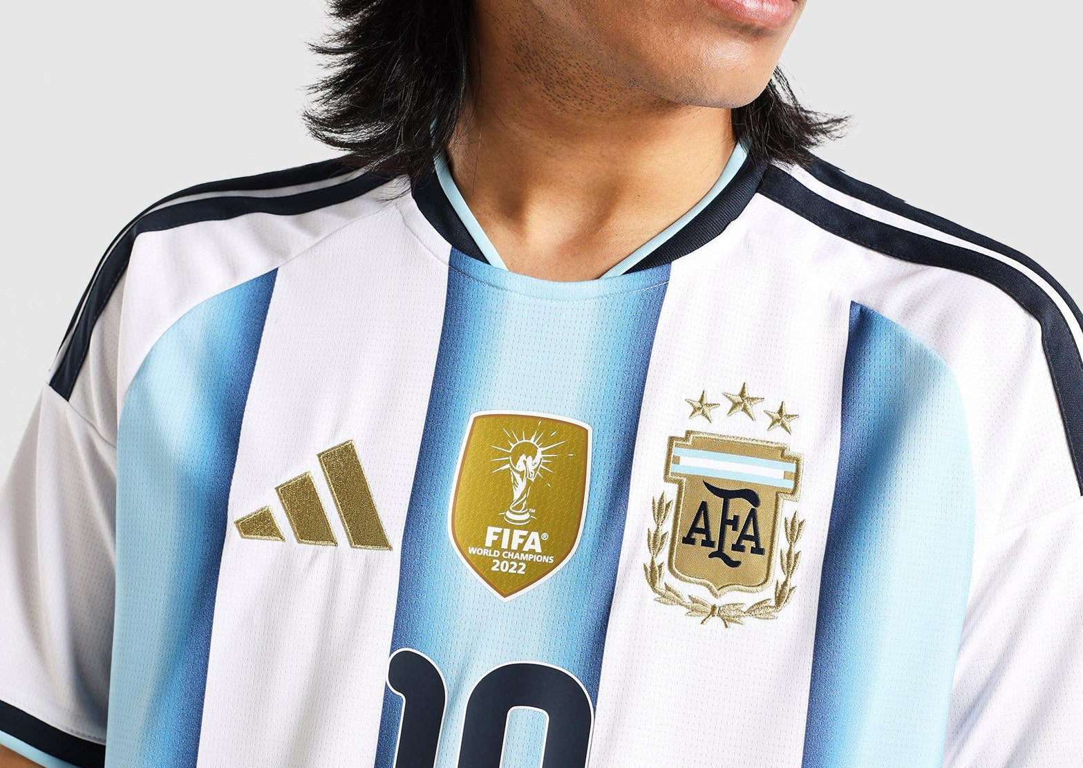 The Argentina 26 Home Replica Messi Jersey is more than just a jersey. It's a celebration of Argentina's football legacy. This jersey marks the first World Cup where the team proudly wears the 3rd star, symbolising their triumphs in '78, '86, and '22. Integrated Climacool fabric technology wicks and disperses your sweat for a cool, dry and distraction-free performance, so you can feel fresh, focused and ready, even during intense matches. With a slim fit, this jersey offers a sleek and athletic look, allowing you to move freely and confidently. The interlock fabric offers durability and comfort, making it a great choice for a range of activities. Embrace the spirit of the World Champions with this jersey. Whether you're on the pitch or cheering from the stands, this jersey connects you to the heart of Argentina's football DNA.