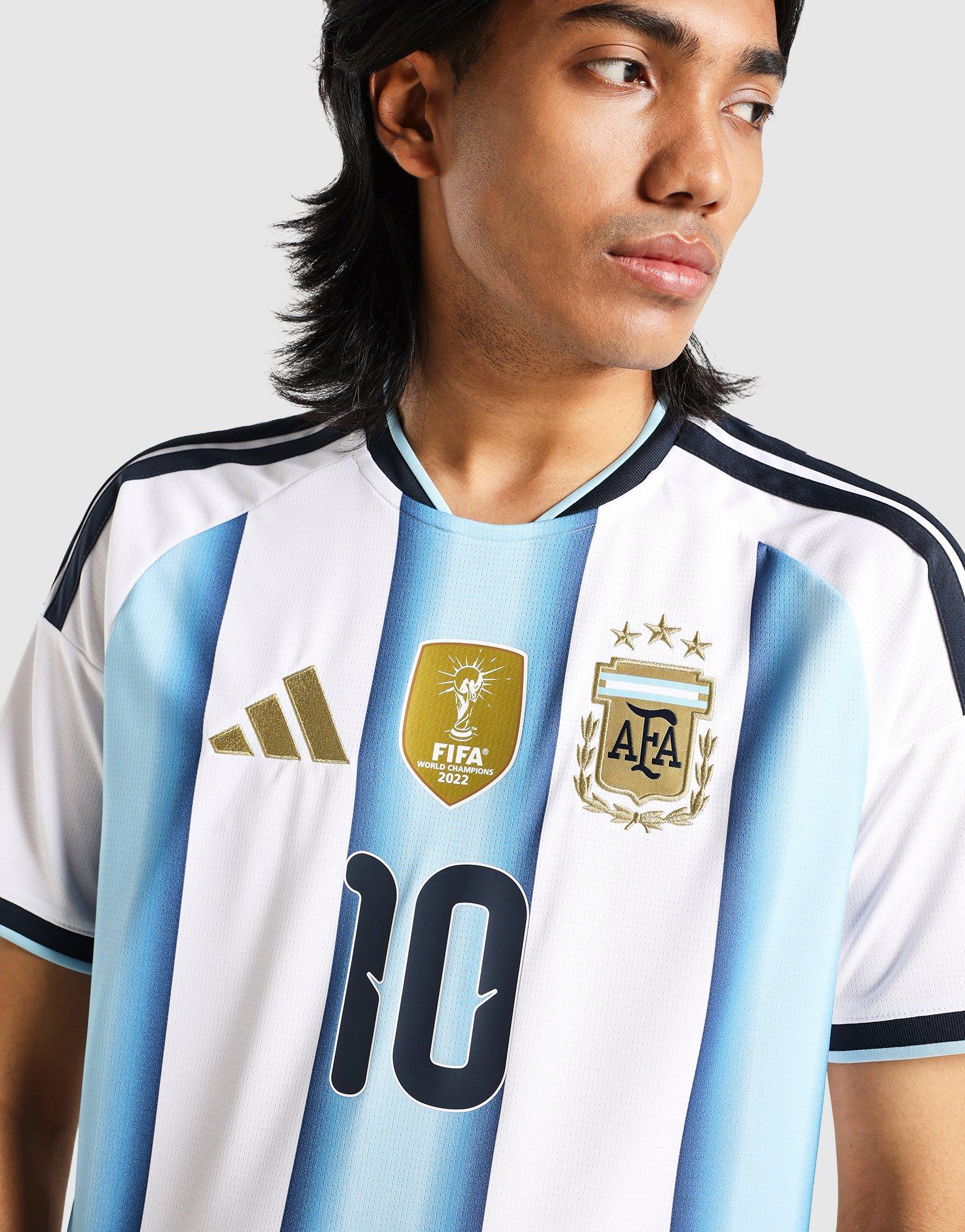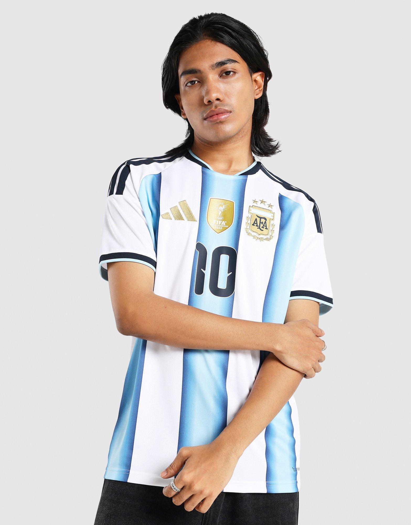 The Argentina 26 Home Replica Messi Jersey is more than just a jersey. It's a celebration of Argentina's football legacy. This jersey marks the first World Cup where the team proudly wears the 3rd star, symbolising their triumphs in '78, '86, and '22. Integrated Climacool fabric technology wicks and disperses your sweat for a cool, dry and distraction-free performance, so you can feel fresh, focused and ready, even during intense matches. With a slim fit, this jersey offers a sleek and athletic look, allowing you to move freely and confidently. The interlock fabric offers durability and comfort, making it a great choice for a range of activities. Embrace the spirit of the World Champions with this jersey. Whether you're on the pitch or cheering from the stands, this jersey connects you to the heart of Argentina's football DNA.
