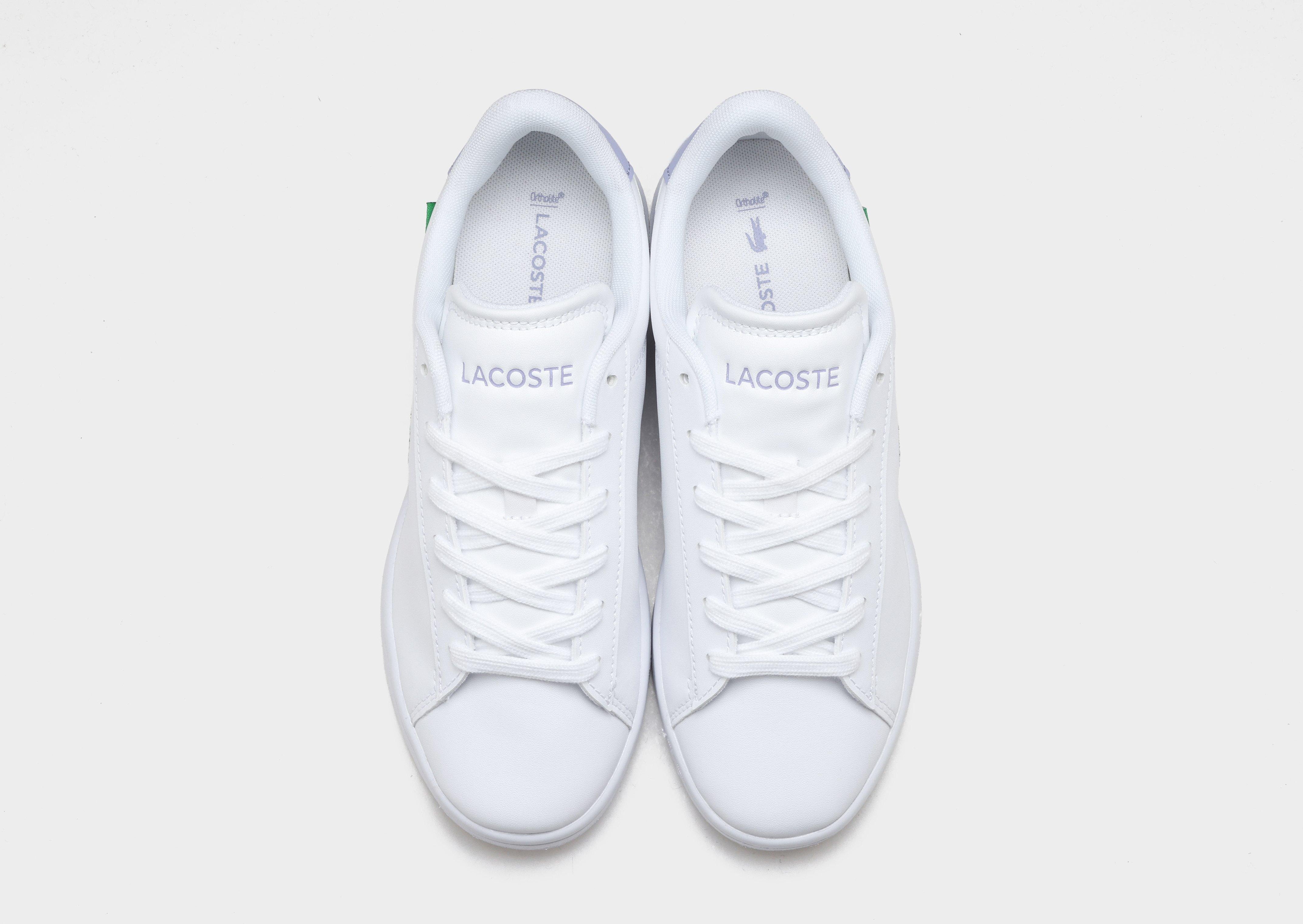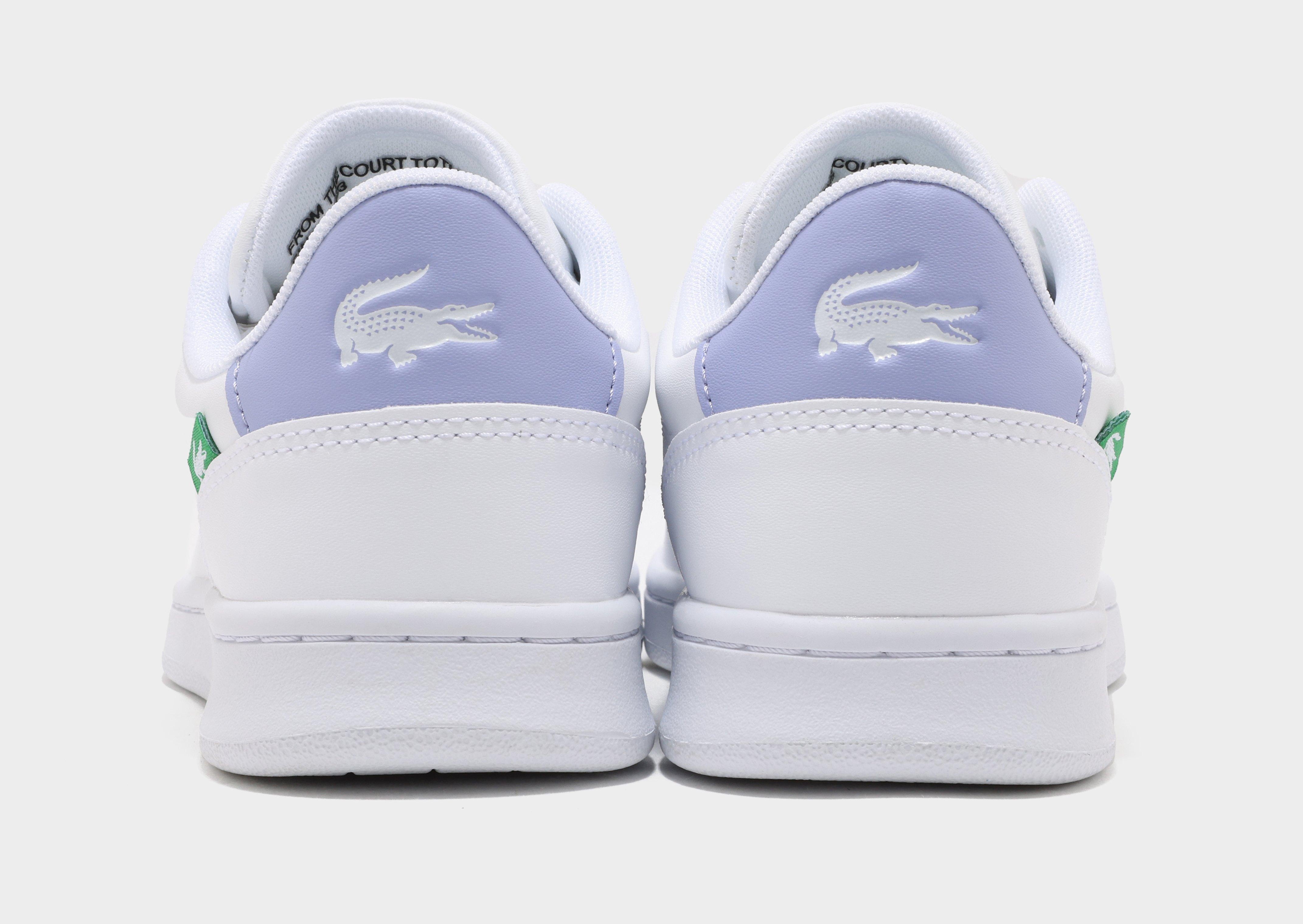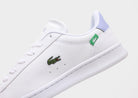 The Lacoste Carnaby Set 225 6 SUJ White/Purple delivers a fresh take on classic court style with a clean, versatile silhouette. Featuring a smooth white synthetic leather upper, it’s accented with soft purple detailing on the heel tab and signature crocodile branding for a subtle pop of color. Built with a cushioned insole and durable rubber outsole, this low-profile sneaker ensures comfort and traction for all-day wear. Effortlessly stylish, it’s an ideal choice for elevating everyday casual looks.