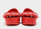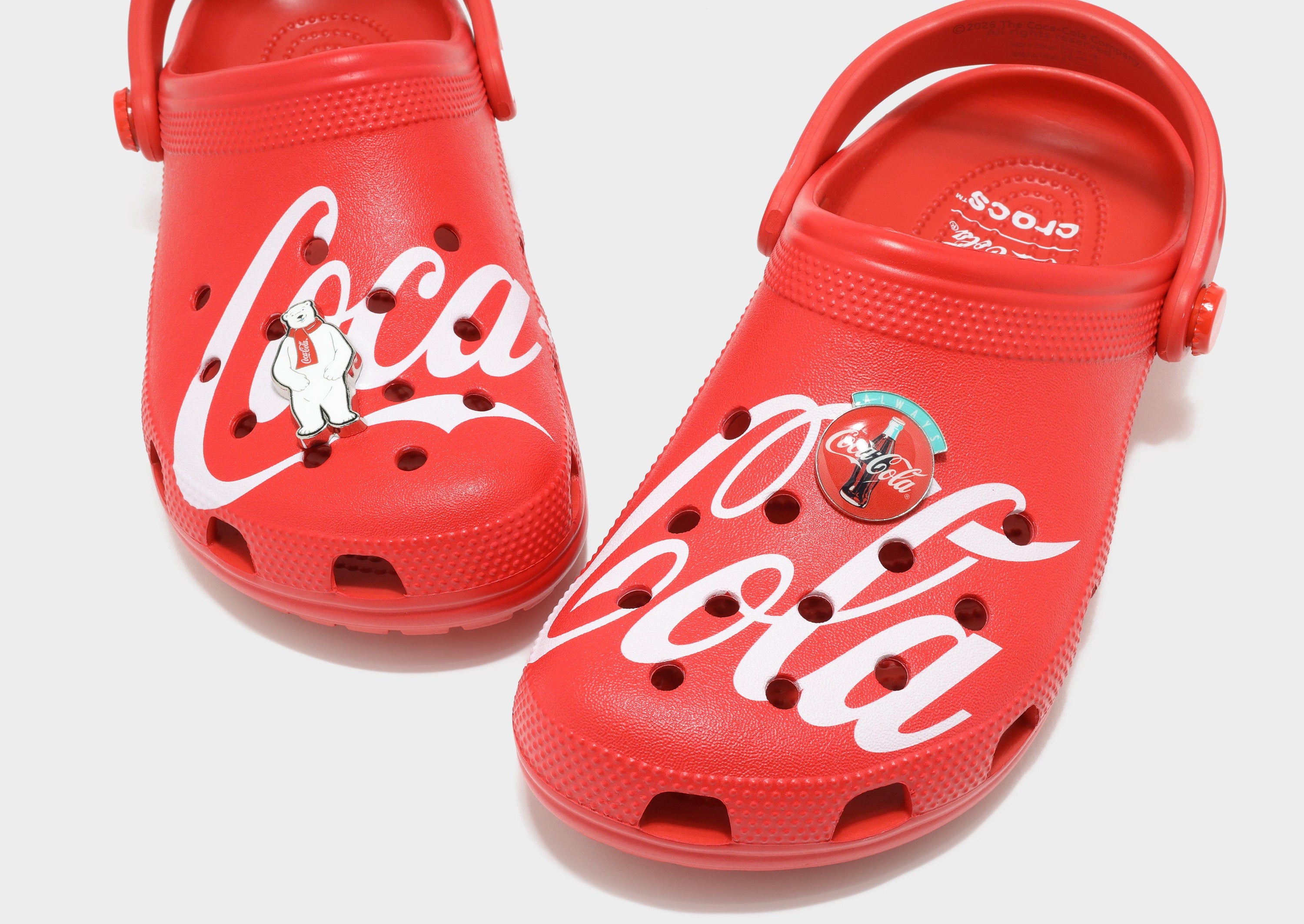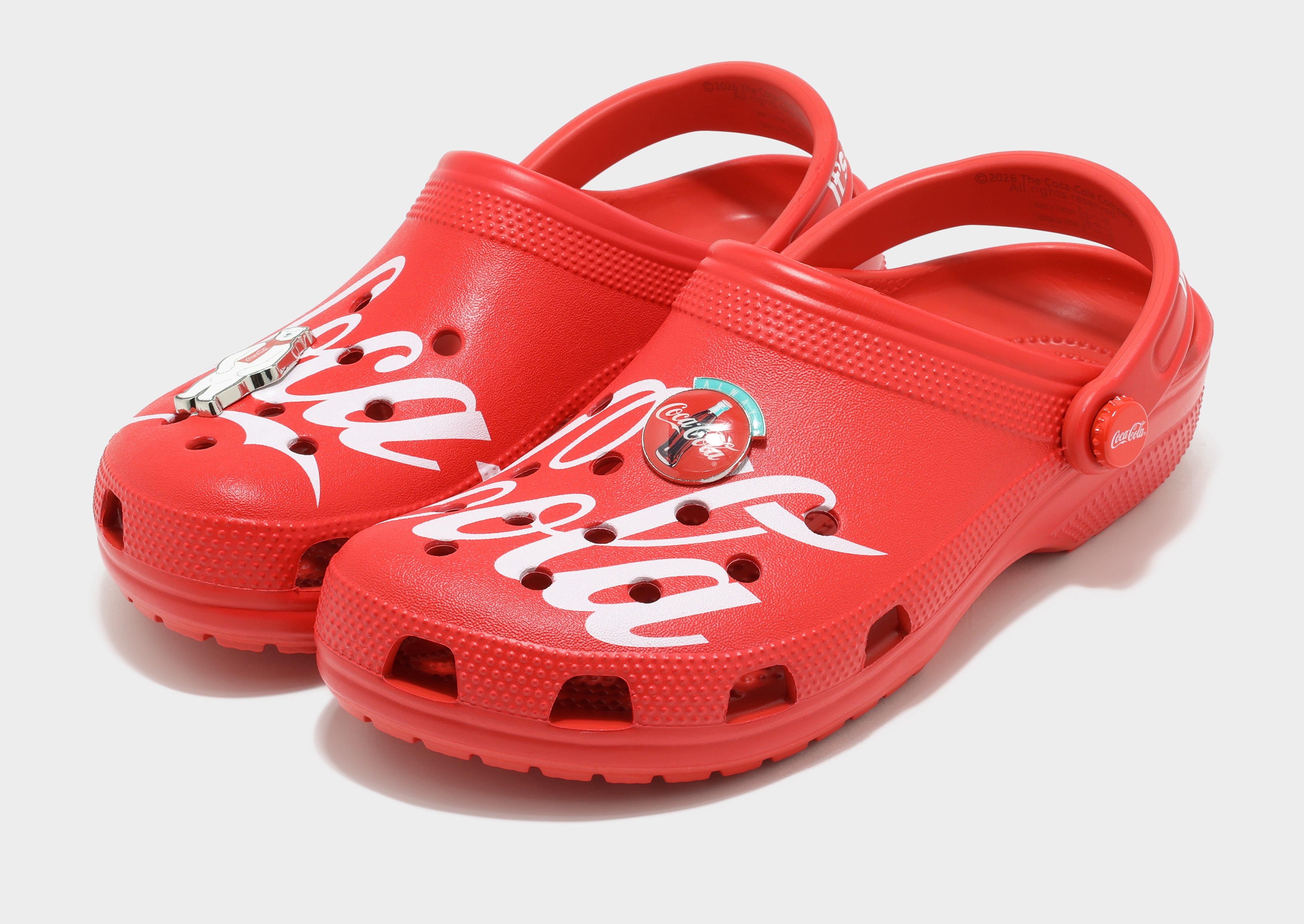 Step into fun, comfort, and iconic style with the Crocs x Coca‑Cola Classic Clog in a vibrant multi‑color design inspired by the legendary Coca‑Cola brand. This special collaboration reimagines the classic Crocs silhouette with bold Coca‑Cola branding, including the vintage slogan “It’s the real thing” printed on the heel strap, plus included metal Jibbitz™ charms that celebrate the fizzy drink’s heritage. Just like all Classic Clogs, these shoes feature Crocs’ signature lightweight, water‑friendly Croslite™ material with ventilation ports for breathability, a pivoting heel strap for a secure fit, and easy‑to‑clean durability — making them comfortable and playful footwear for everyday wear.