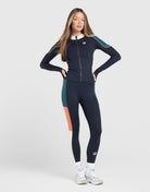 Bring big energy. Red Run's coming through with this women's Elements Tech Full Zip Track Top. Colour blocked panels sit against soft navy fabric. Stretch feels sleek. It's got a zip-through fastening and thumb loops to hold the sleeves in place. Finished with a signature logo at the chest. Machine washable at 30 degrees. Technical product must be washed seperately away from cottons. Please wash with similar colours, do not soak and remove promptly after washing. | Our model is 5'10 and wears a size S.
