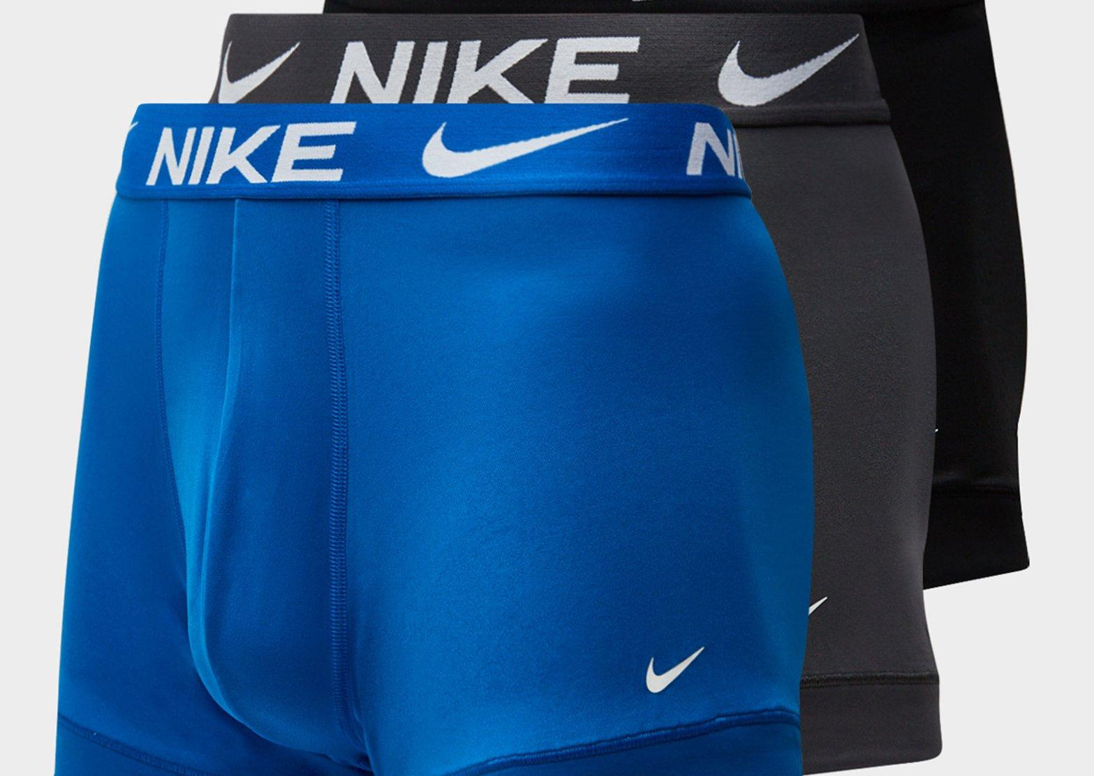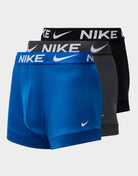 A comfortable and iconic three-pack trunk, with a regular rise and leg for the optimal amount of coverage, and Nike's signature Dri-FIT technology to keep you dry, even when you work up a sweat. With a branded waistband, make a statement with these trunks, whether it is for everyday wear or for the gym.