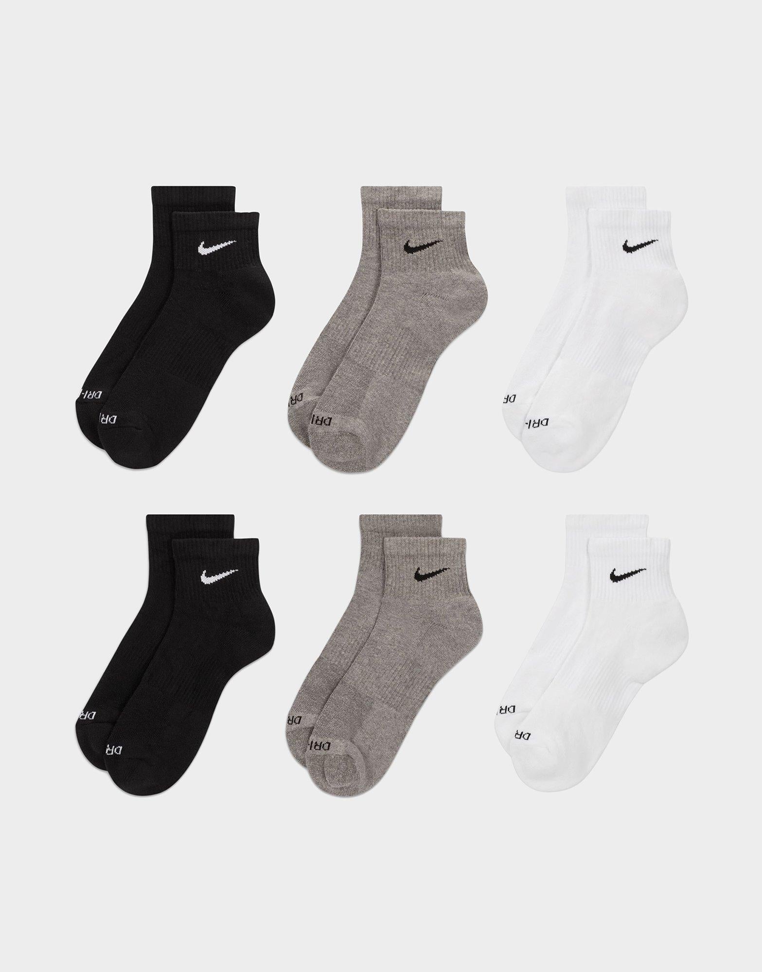 The Nike Everyday Plus Cushioned Socks bring comfort to your workout with extra cushioning under the heel and forefoot and a snug, supportive arch band. Sweat-wicking power and breathability up top help keep your feet dry and cool to help push you through that extra set.