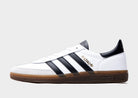 Iconic '70s style stays trending with these Handball Spezial trainers from adidas Originals. In a Cloud White and Core Black colourway, these revamped classics have a leather, suede and synthetic upper. The timeless design features the T-toe panel and serrated 3-Stripes, while the Gum rubber outsole below grips every step. With a cushioned insole and synthetic lining for comfort, they're finished off with Gold Spezial wordmark branding.