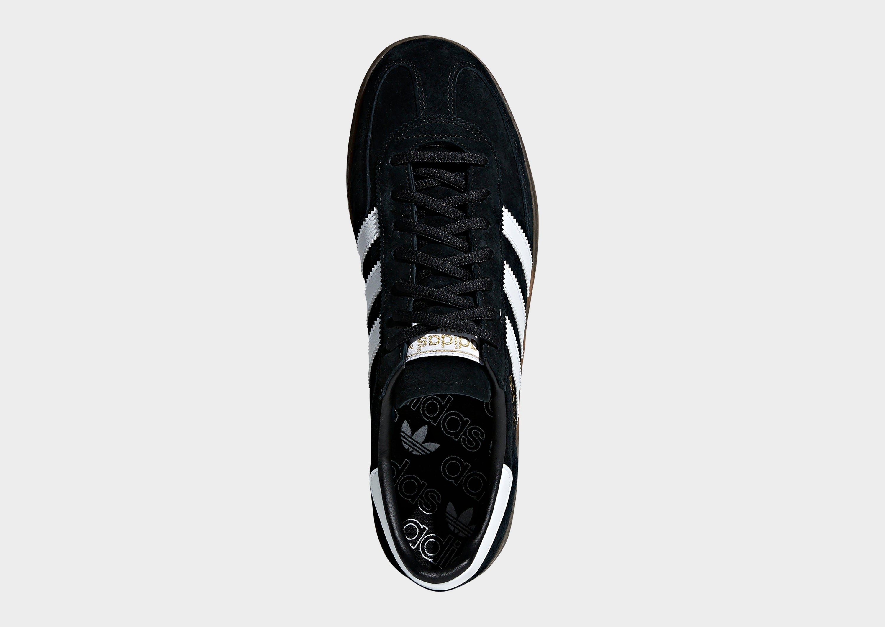 Lace up in an iconic style with these women's Handball Spezial trainers from adidas Originals. In a Black colourway, these sports heritage kicks have a soft nubuck suede upper for lasting wear. They feature a tonal lace fastening with a low-cut padded collar for a secure fit, and sit atop a streamlined midsole with an OrthoLite sockliner for a cushioned fele. With a tough gum rubber outsole for grippy traction, they're finished with adidas' legendary 3-Stripes to the sidewalls and a Spezial wordmark. Signed off with Trefoil branding at the heel and tongue.