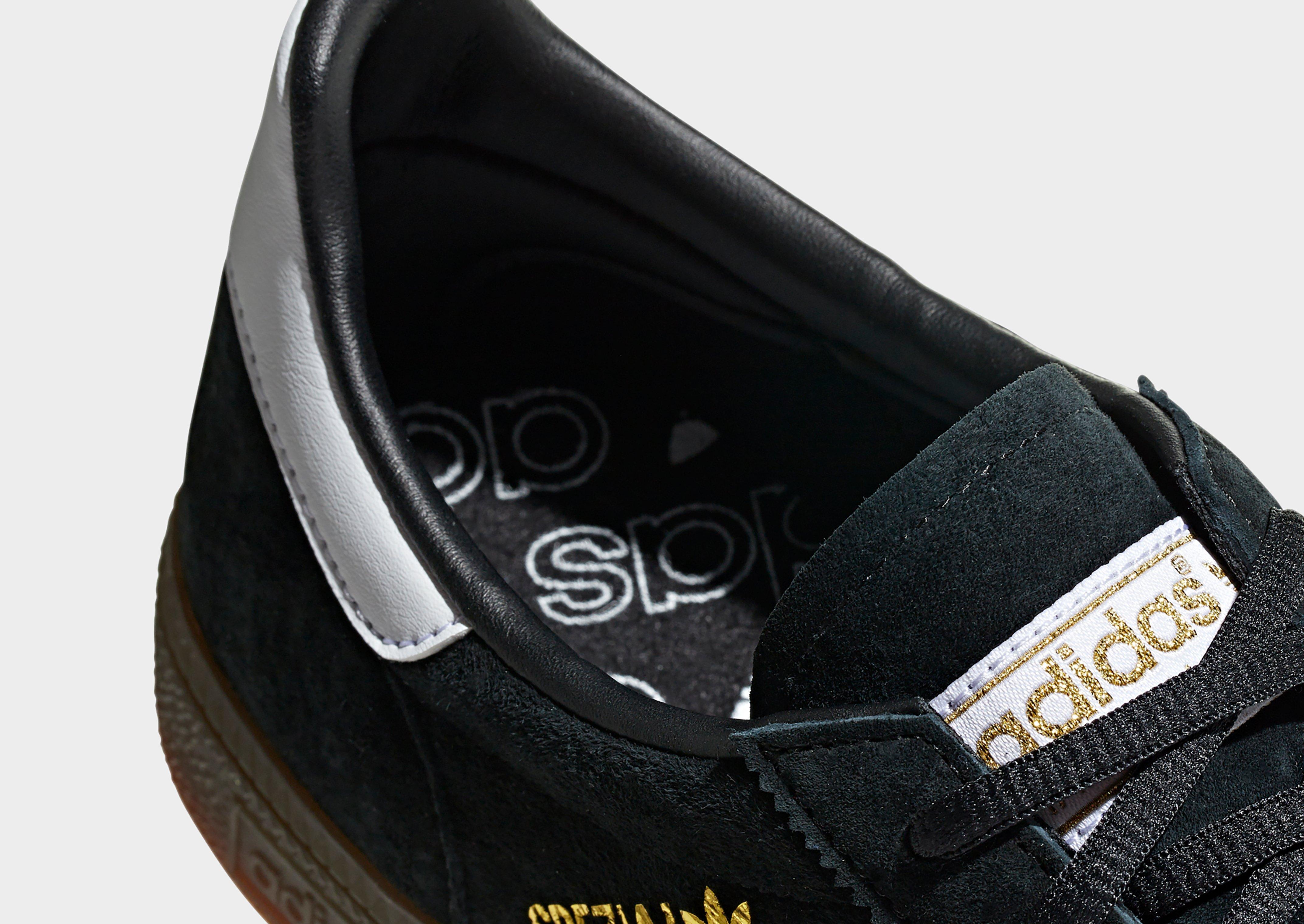 Lace up in an iconic style with these women's Handball Spezial trainers from adidas Originals. In a Black colourway, these sports heritage kicks have a soft nubuck suede upper for lasting wear. They feature a tonal lace fastening with a low-cut padded collar for a secure fit, and sit atop a streamlined midsole with an OrthoLite sockliner for a cushioned fele. With a tough gum rubber outsole for grippy traction, they're finished with adidas' legendary 3-Stripes to the sidewalls and a Spezial wordmark. Signed off with Trefoil branding at the heel and tongue.
