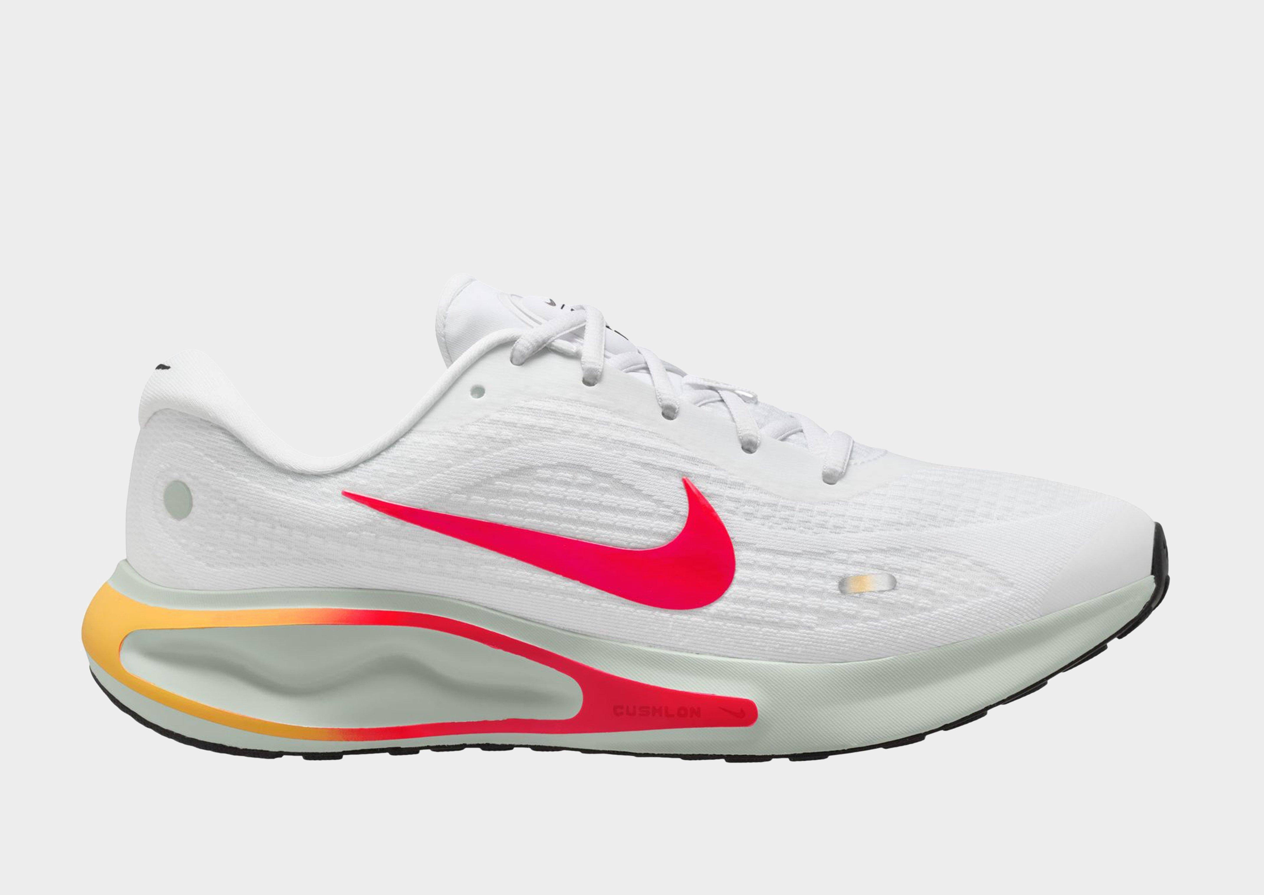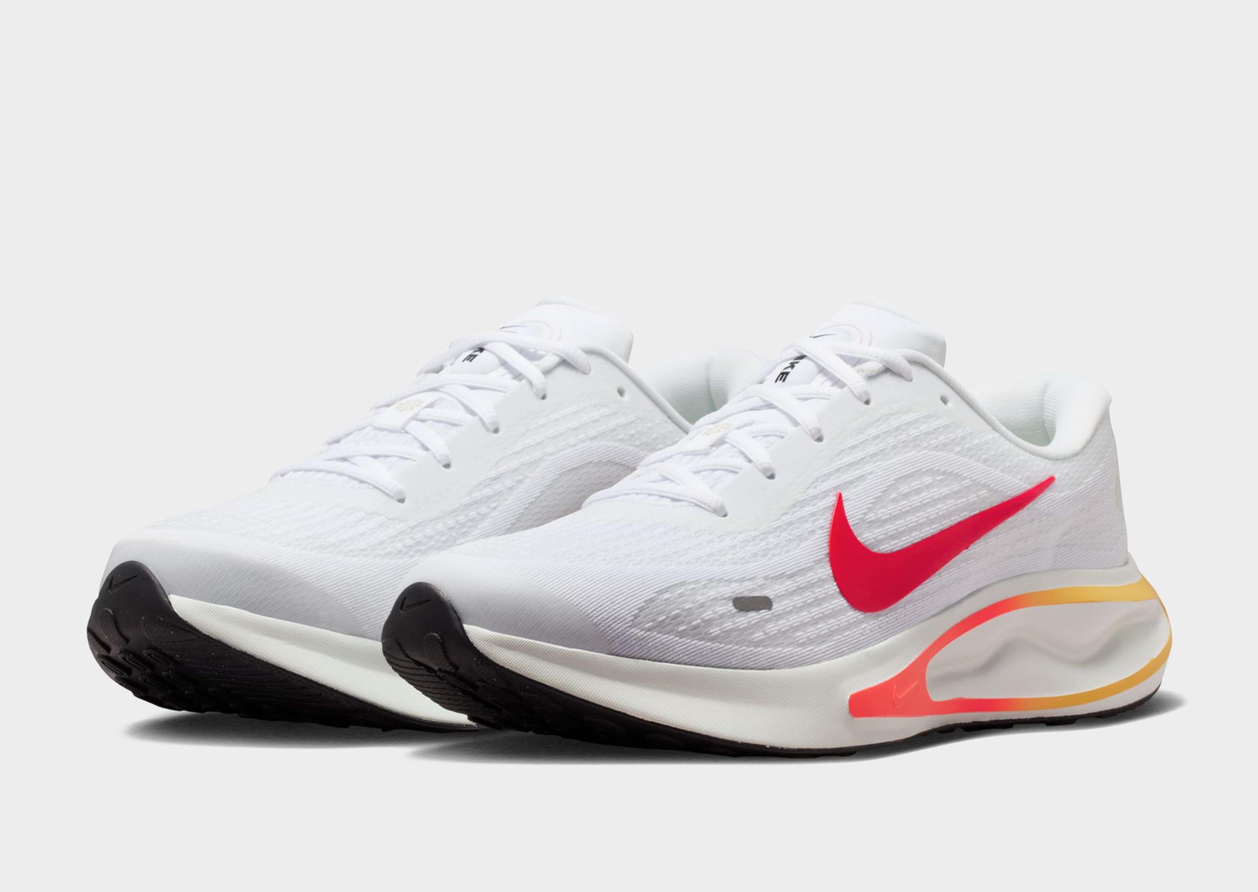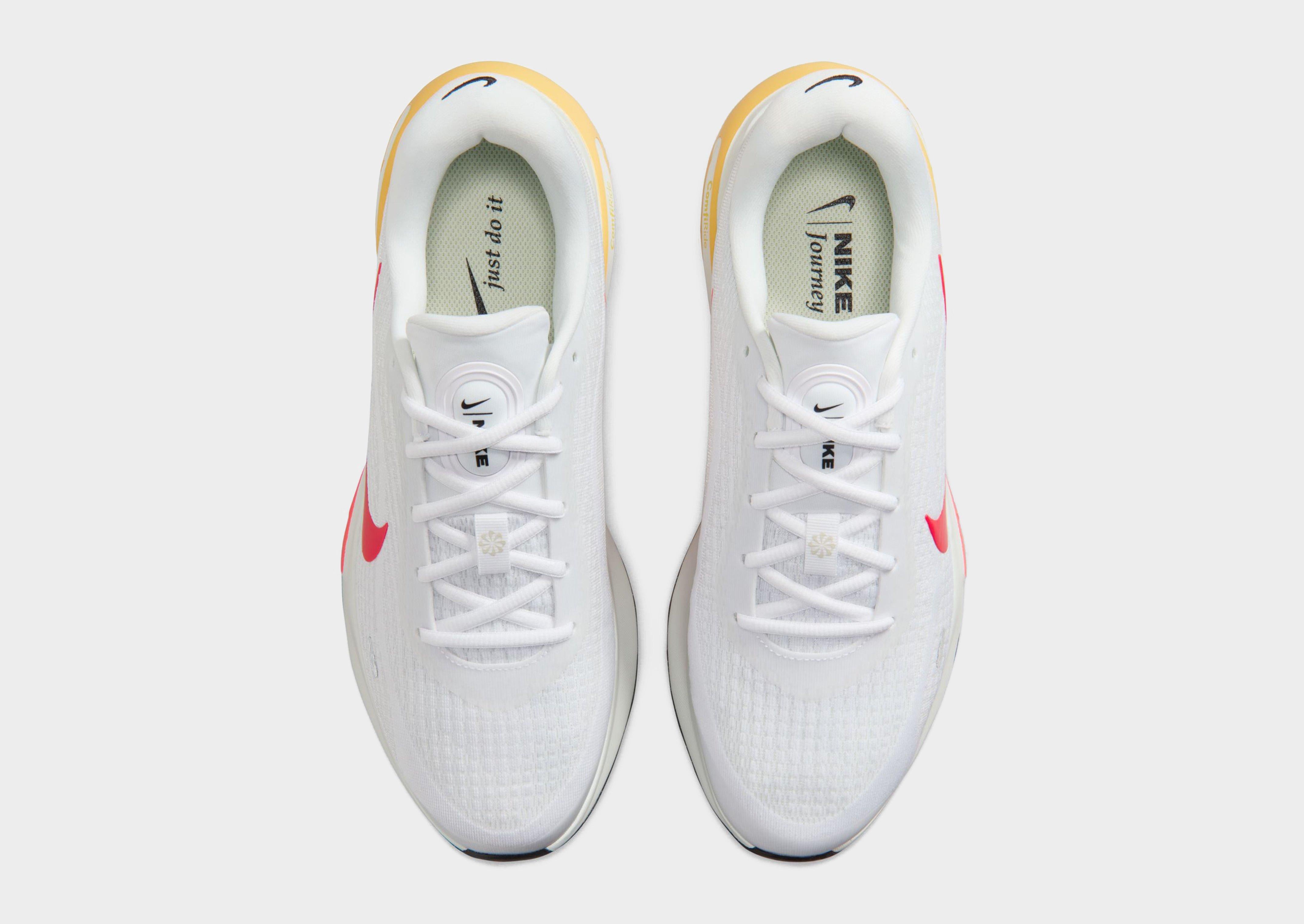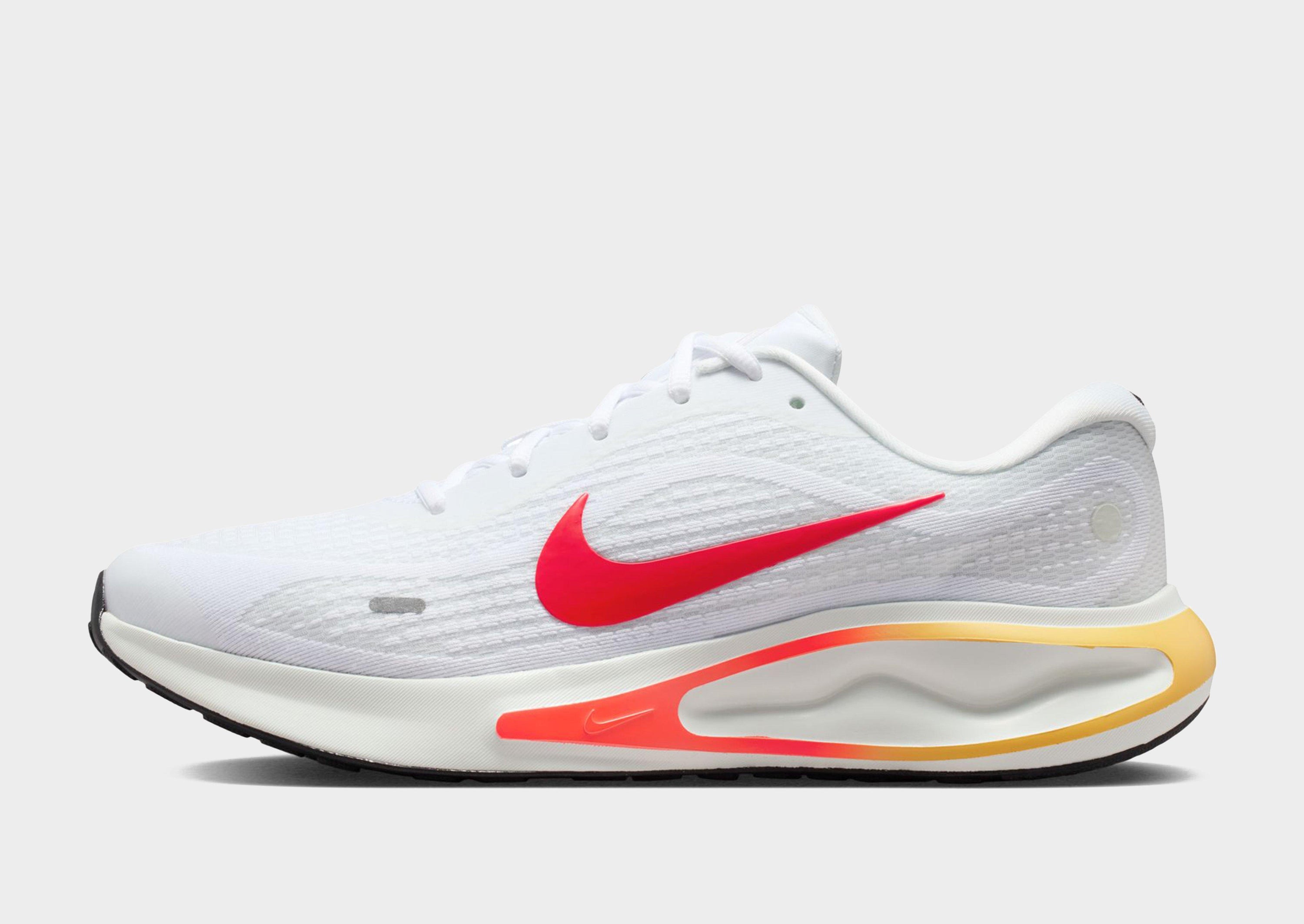 The Nike Journey Run Men's Road Running Shoes deliver comfort and support on every step, featuring an extra-high foam stack and supersoft ComfiRide cushioning for a smooth, enjoyable ride. The engineered mesh upper ensures a secure fit, while extra cushioning in the heel and soft touch points on the tongue and collar enhance comfort. A rubber outsole provides reliable traction, and reflective details improve visibility, though the shoes are not intended for use as personal protective equipment (PPE).