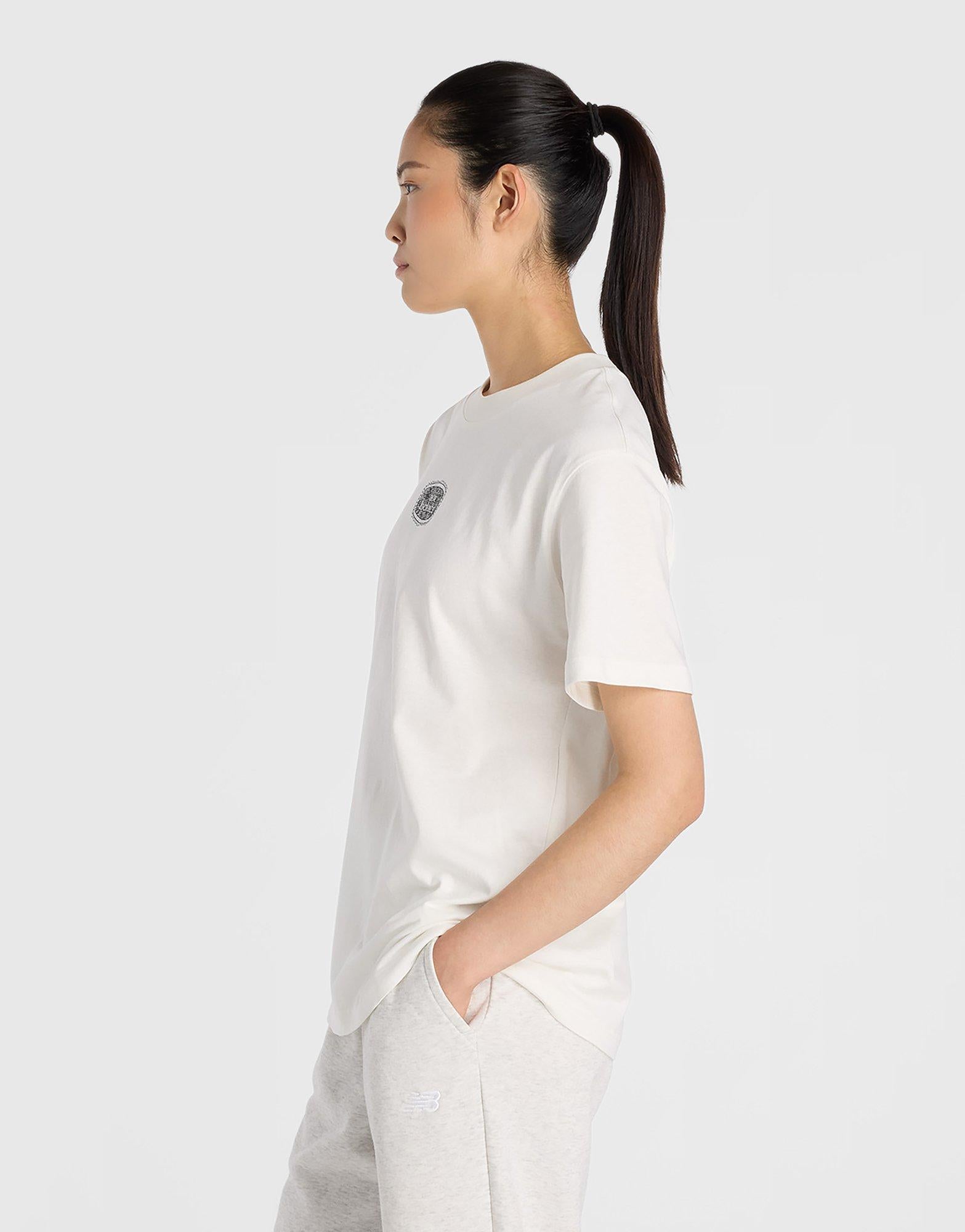 Featuring a fresh lace graphic inspired by the New Balance archives, this t-shirt is designed to elevate your everyday style with a clean, modern look. Crafted from soft cotton jersey fabric for all-day comfort, it features short sleeves and a classic silhouette, and is made from 100% cotton for a natural, breathable feel. Imported.