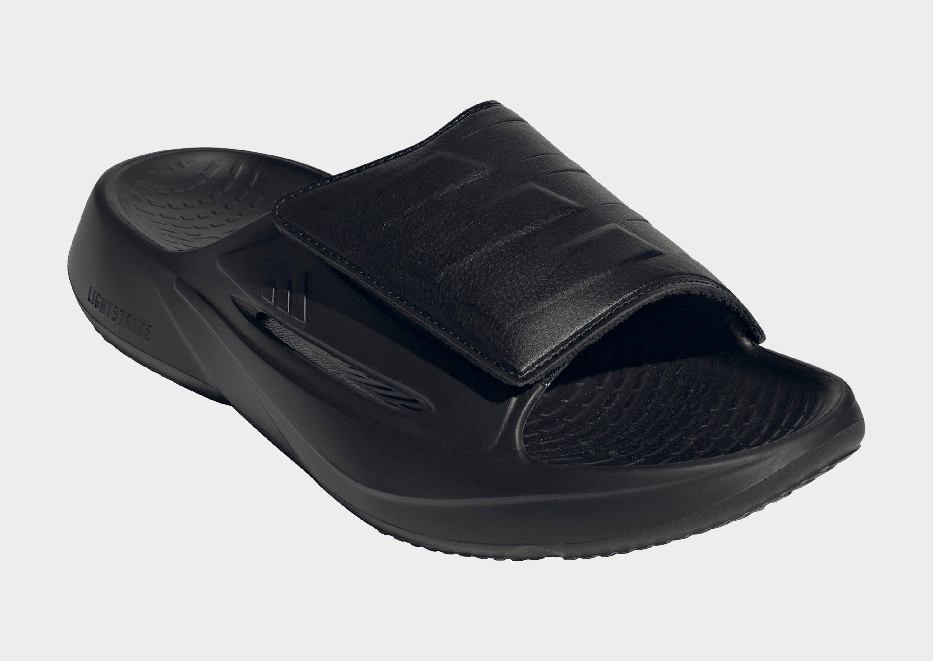 Slip into comfort with these adidas slides. The Lightstrike cushioning is ultra lightweight, making this pair perfect for days when you're on the go. A synthetic upper with an adjustable strap lets you find the right fit, while a textile lining provides a soft feel against your foot. The modern design is finished with a synthetic outsole, offering the grip you need.