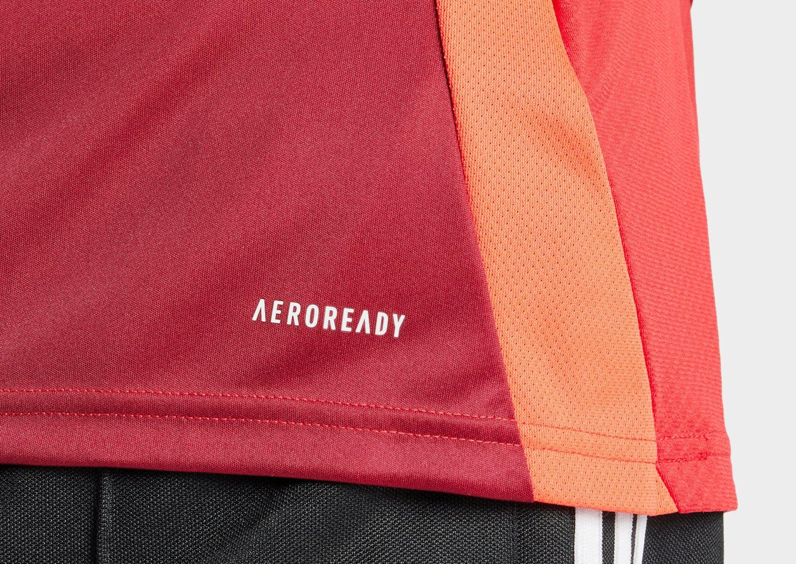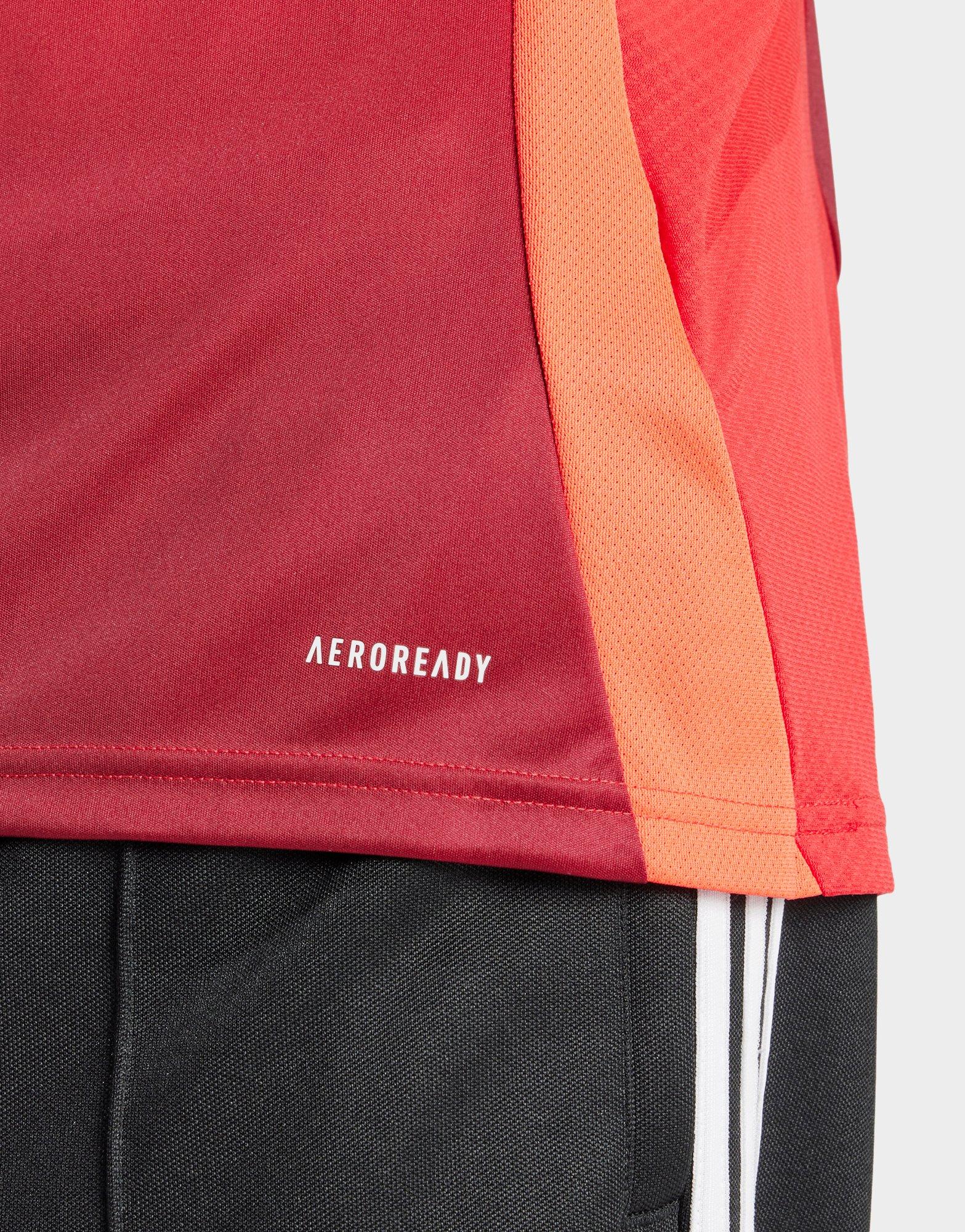 From the street to Old Trafford, cheer on your side with this men's Manchester United FC 2024/25 Home Shirt from adidas. This slim fit shirt is cut from a smooth recycled poly fabric that uses sweat-wicking AEROREADY tech for cool comfort on-and-off the field. In a Red colourway, it features a crew collar with short sleeves for a classic look, and has mesh inserts for added airflow. Signed off with the Performance logo and MUFC crest to the chest. Machine washable.