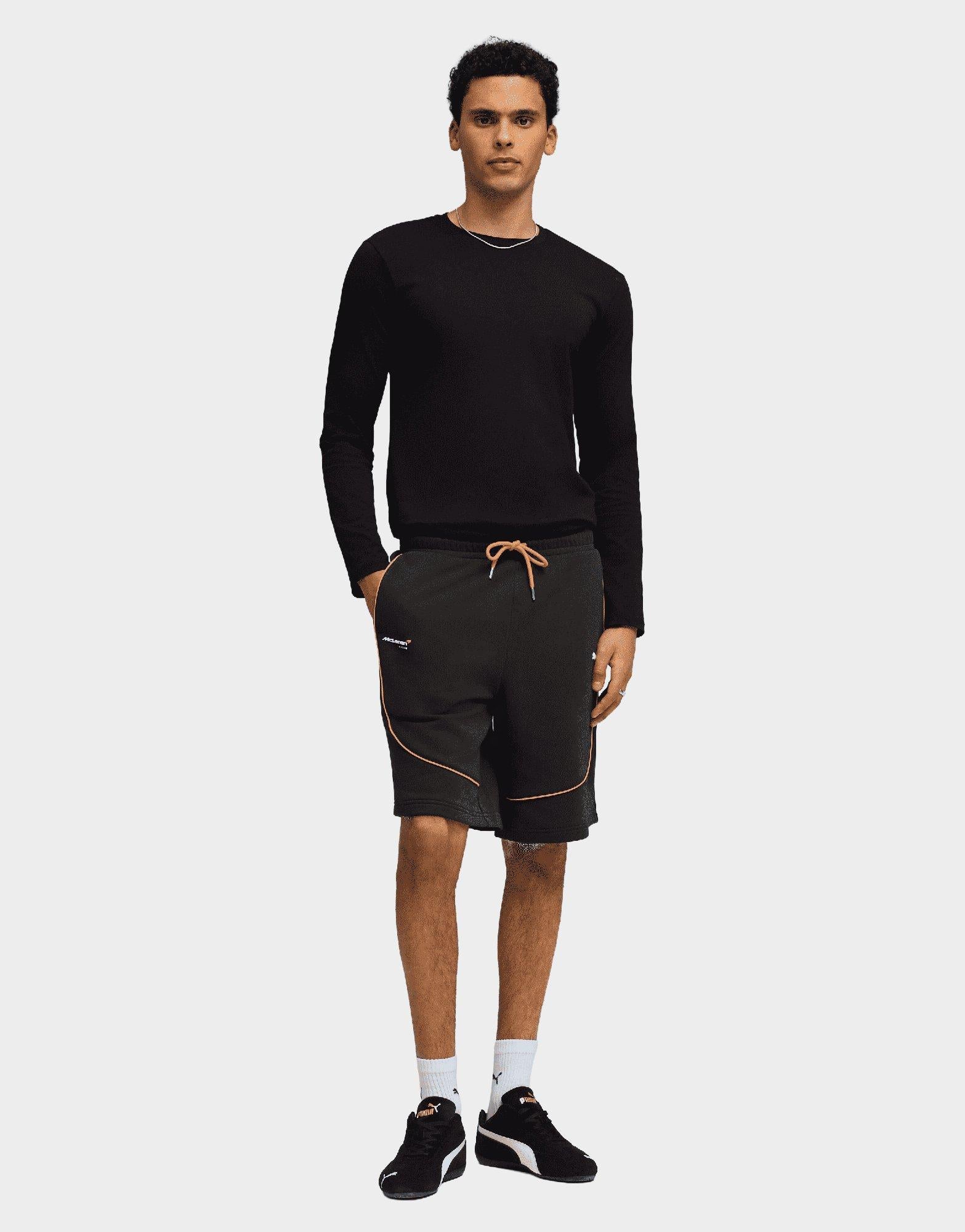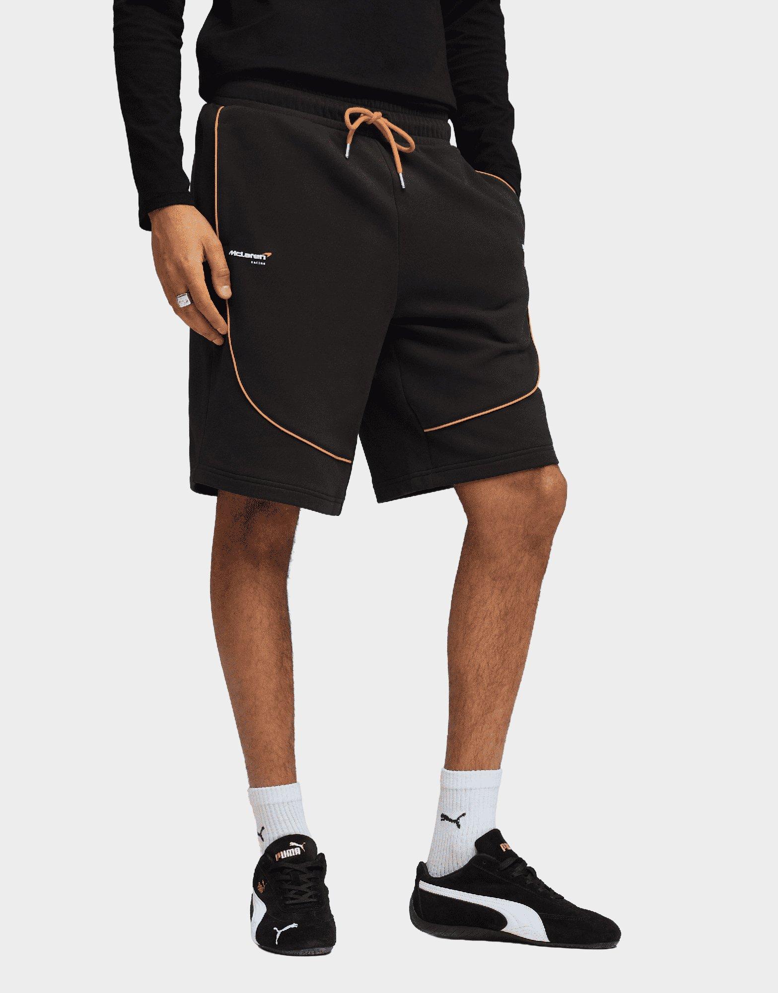 The Puma McLaren Shorts in Puma Black deliver a comfortable, sporty style inspired by motorsport. Made from lightweight, breathable fabric, they feature an elastic waistband with drawcord for a customizable fit and side pockets for practicality. Subtle McLaren and Puma branding add a sleek, performance-driven touch, making these shorts perfect for casual wear, training, or showing support for the racing team.