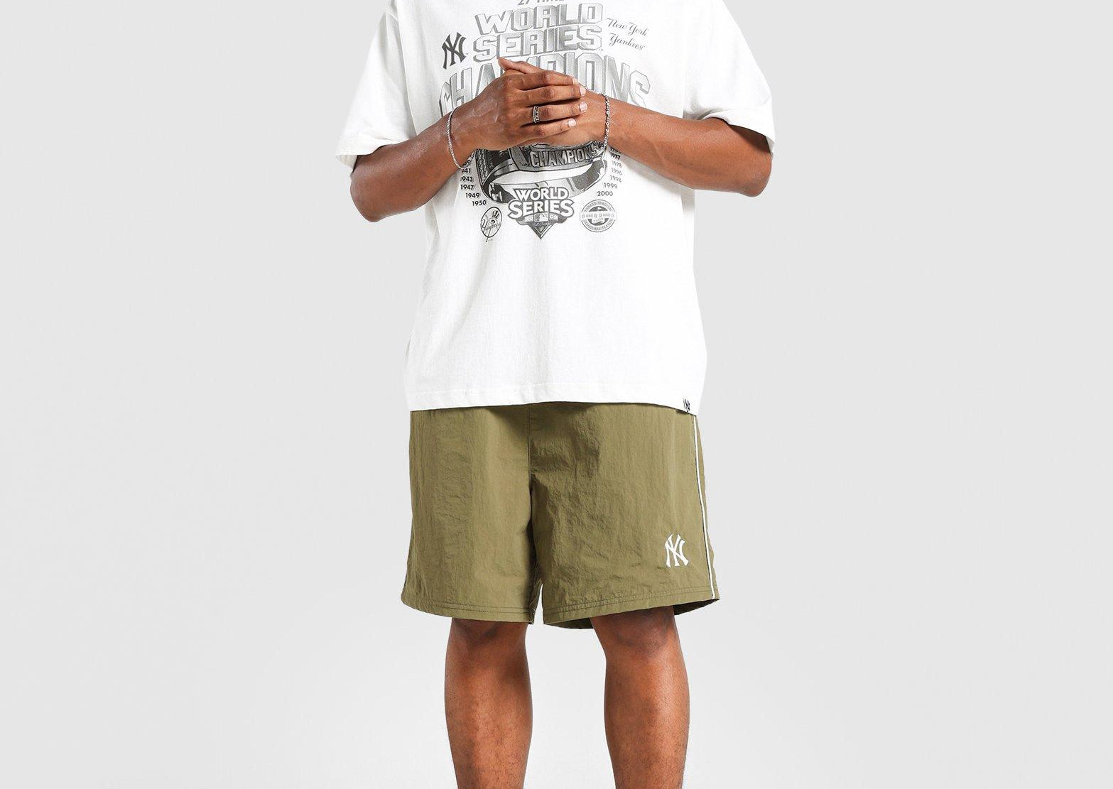A versatile short in a winter moss green tone, styled with contrast piping for a sleek, athletic edge. Crafted from lightweight, breathable fabric, it provides lasting comfort and ease of movement, perfect for workouts, casual wear, or game-day support. Finished with the iconic Yankees logo, these shorts deliver a balance of sporty function and timeless team pride.