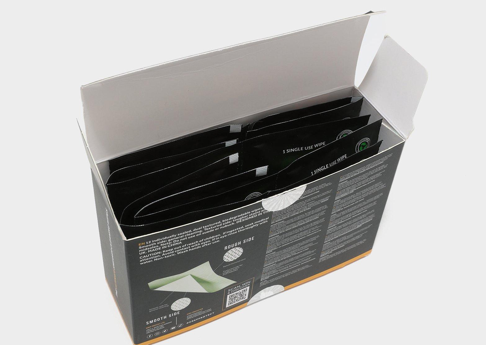 The ultimate on-the-go sneaker care product. Crep Protect Wipes are individually wrapped, locking in the exclusive cleaning solution that helps to clean dirt, marks and stains. The dual sided wipe means double the surface area for cleaning; tackle stubborn dirt and marks with the textured side, and wipe away grime and stains with the smooth side. Durable wipe won't fall apart during even the toughest of cleans, and handy sizing means these wipes are perfect for travel bags, gym bags, suitcases and more.
