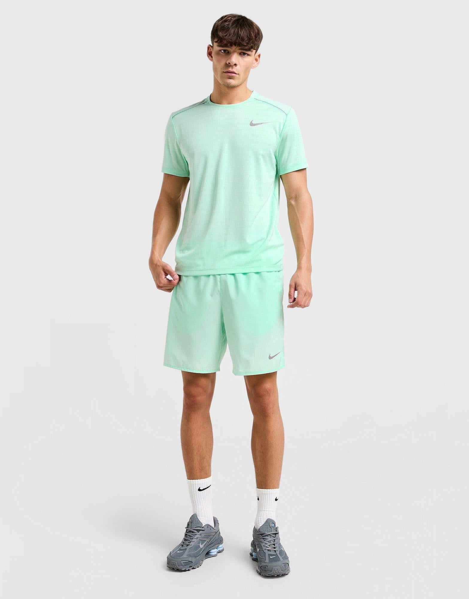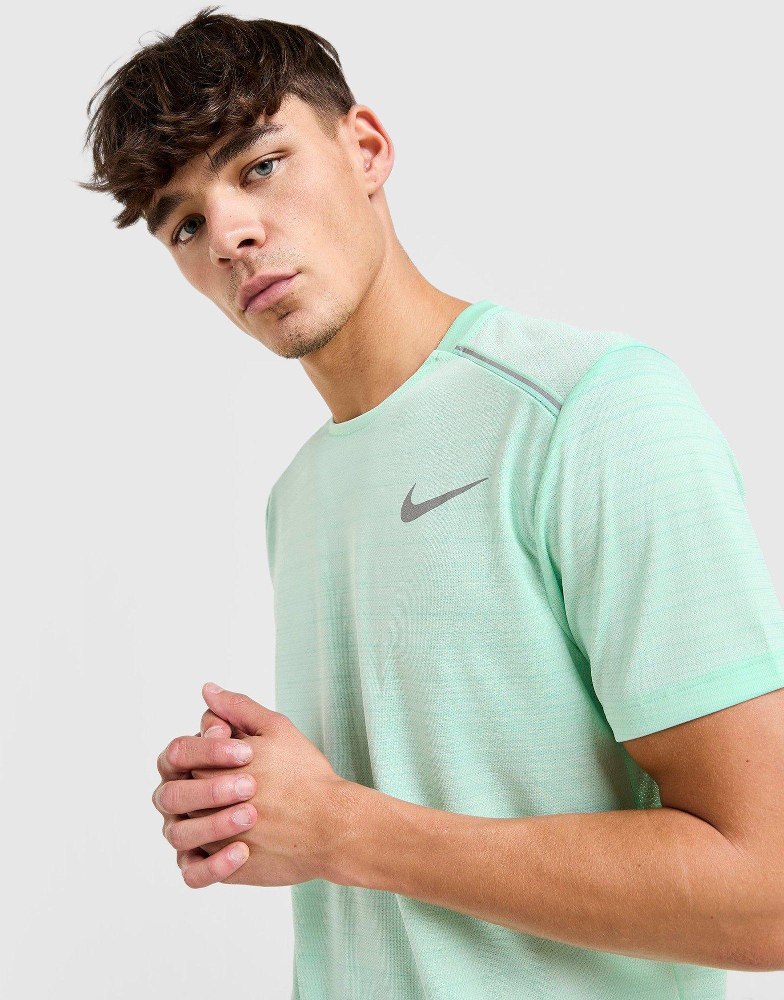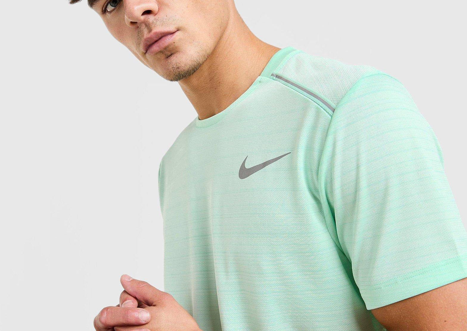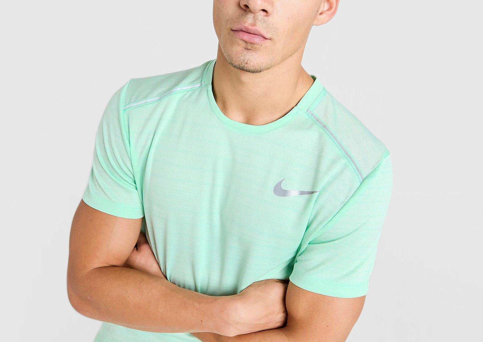 Experience a fit that’s made to move with the Nike Miler Running Shirt for men. Designed to wick away sweat, this shirt is made from ultra-lightweight fabric and features a slightly longer cut than standard tees, offering added coverage without extra bulk. Breathable and cool, it ensures all-day comfort and helps reduce fatigue during your runs. Side vents promote natural movement, while the special lightweight knit fabric is mesh-like on one side and smooth on the other—delivering a soft, cool feel and excellent moisture management. Additional features include a reflective Swoosh logo for visibility and a “Nike Running” neck tape at the back.