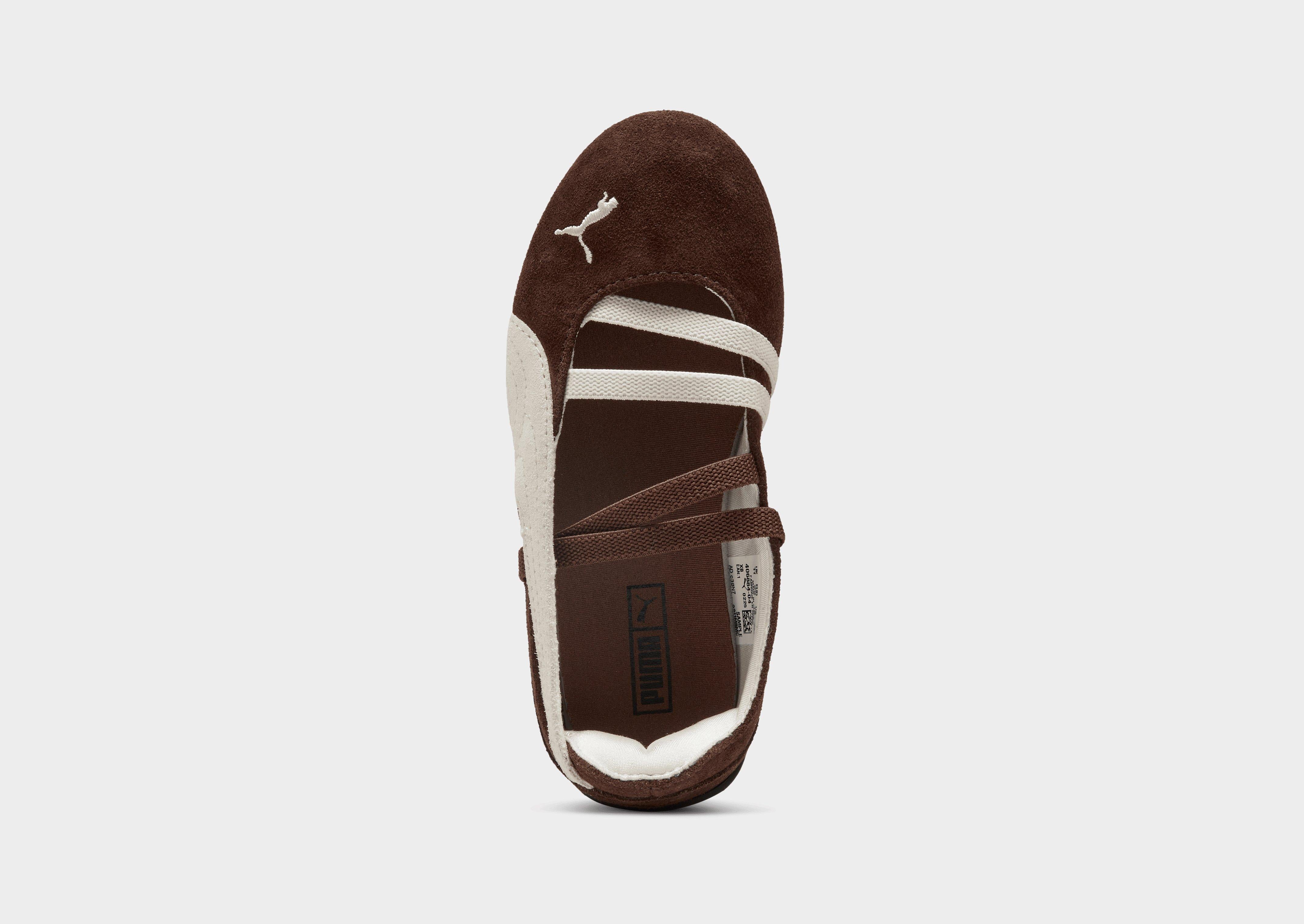 The PUMA Speedcat Ballet is a fresh take on the classic ballet-inspired silhouette, reimagining the iconic racing culture sneaker with a sleek slip-on design. It delivers casual, street-ready style with the signature PUMA Formstrip, an elastic strap for a secure fit, and a rubber outsole for grip. The shoe features a regular width, a suede upper with rubber accents, a fabric lining, and the distinctive Formstrip on the sides. Material details: upper – 81.11% cow leather, 18.89% fabric; lining – 100% fabric; insole – 100% fabric; outsole – 100% rubber. Perfect for effortless style with motorsport-inspired heritage.
